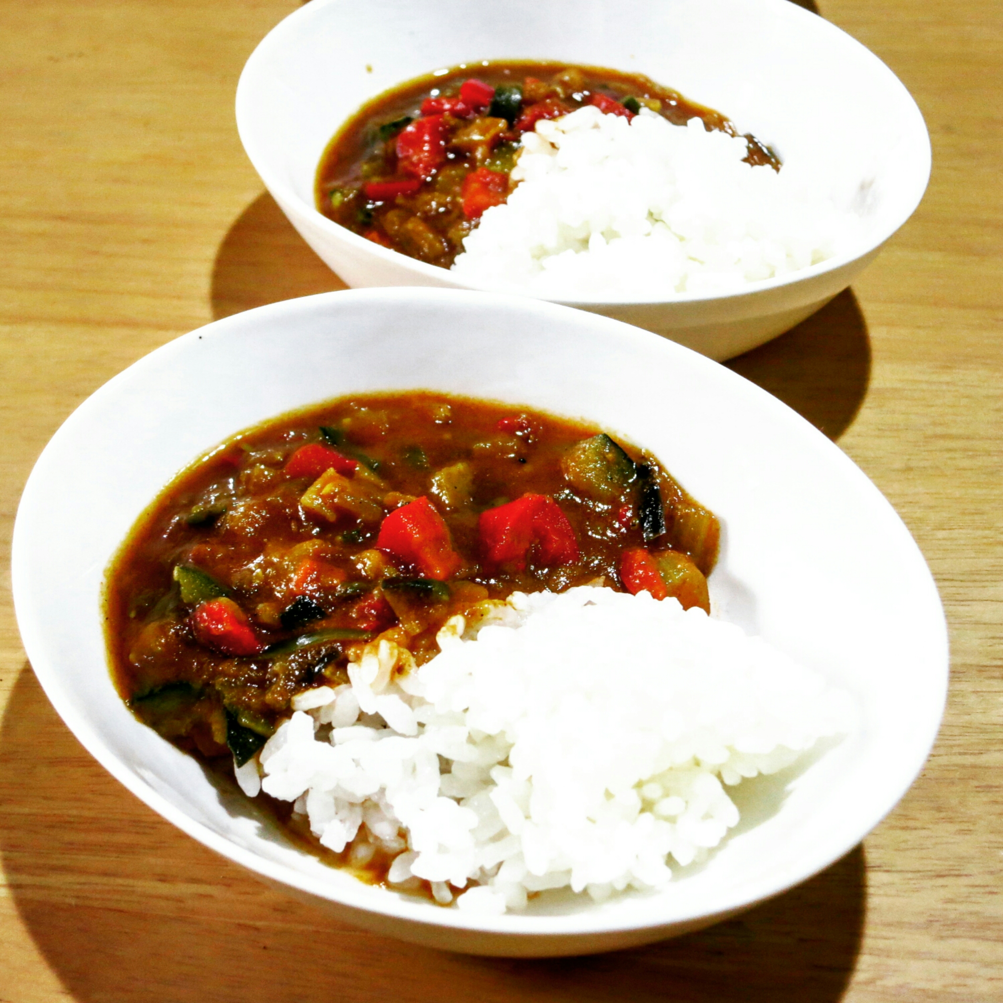 細かく刻んだ夏野菜をさっぱりした味わいのカレーにしてみました。