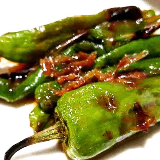 鮮やかなグリーンの獅子唐を、ごくシンプルにおつまみにしてみました。