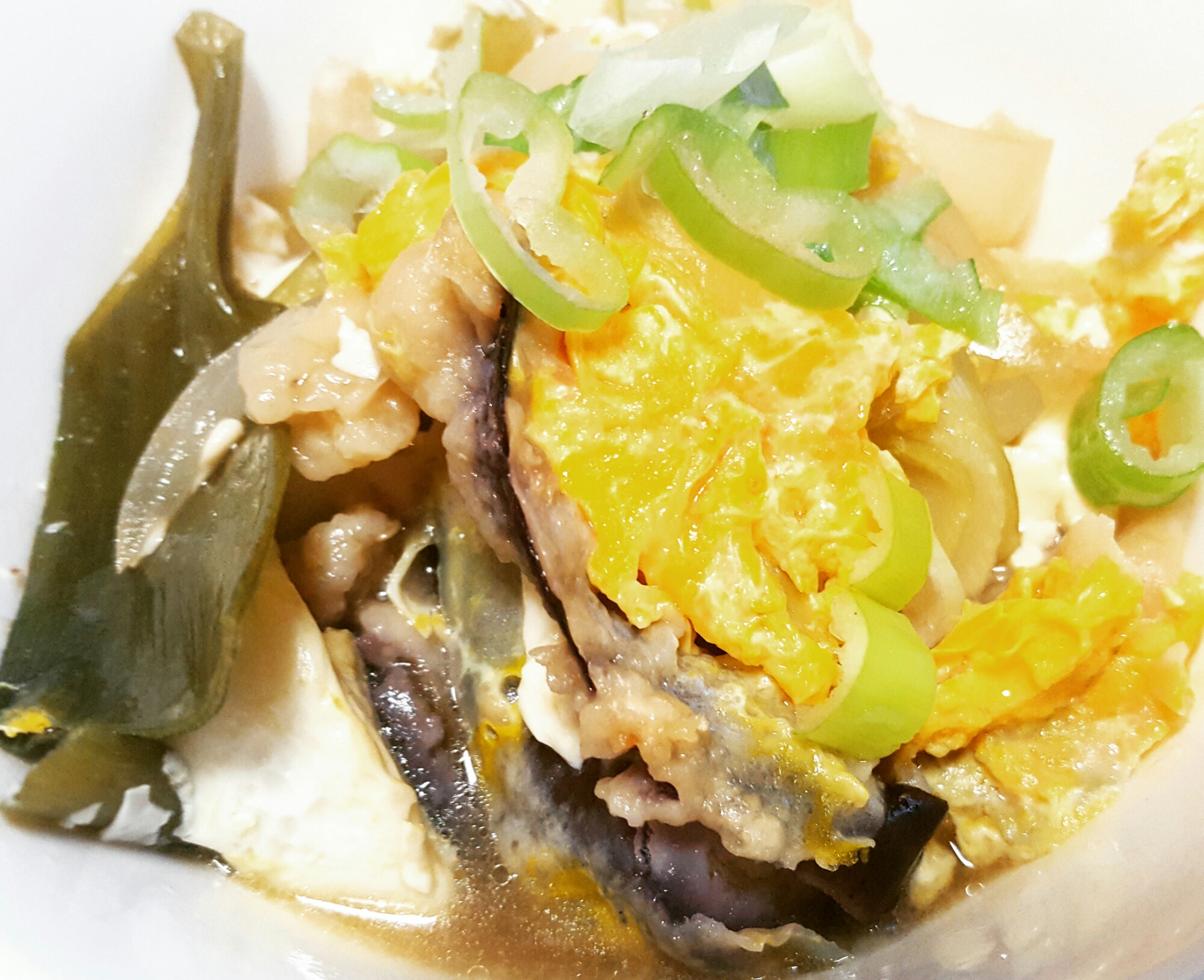 豆腐と一緒に麺つゆで煮て、卵をときいれます。