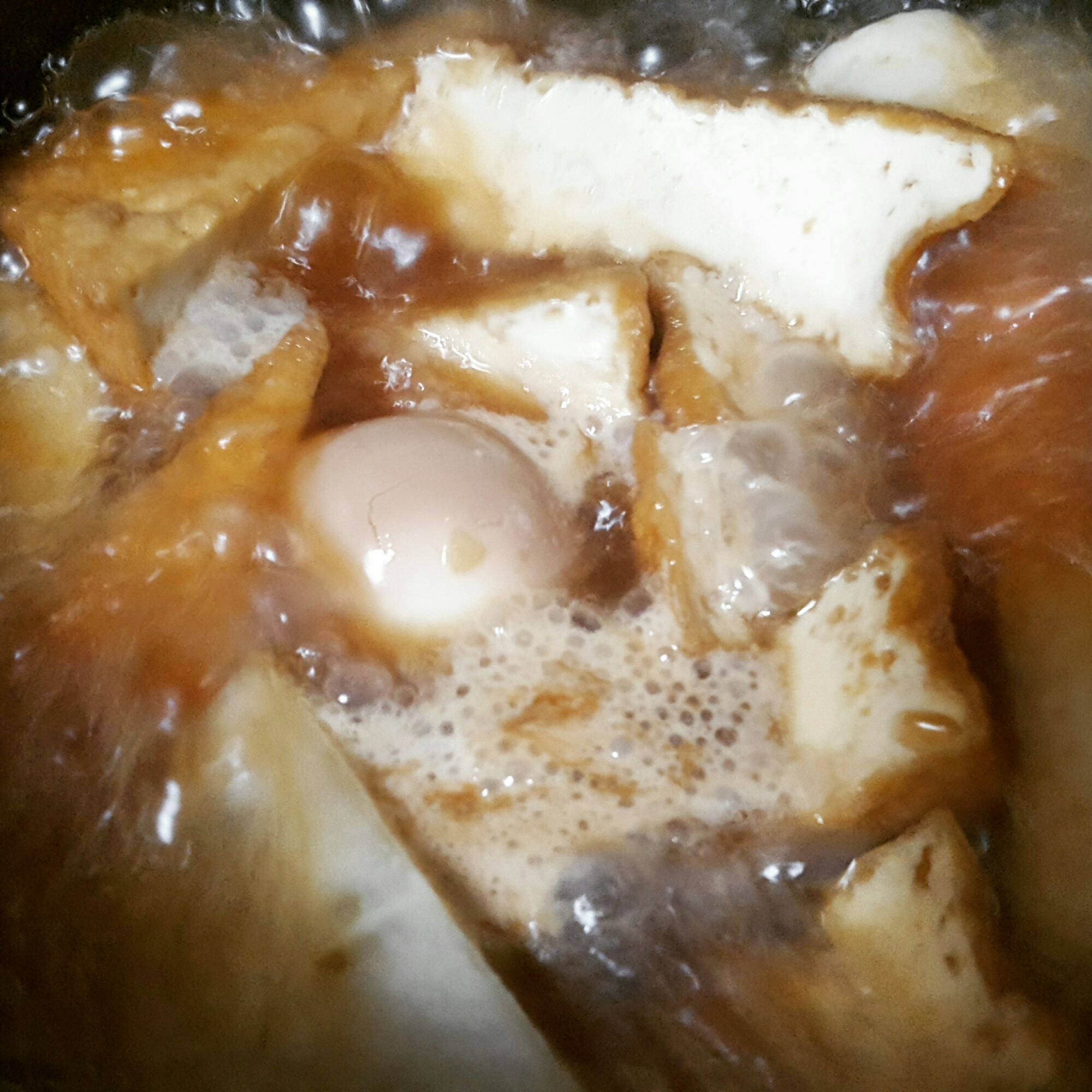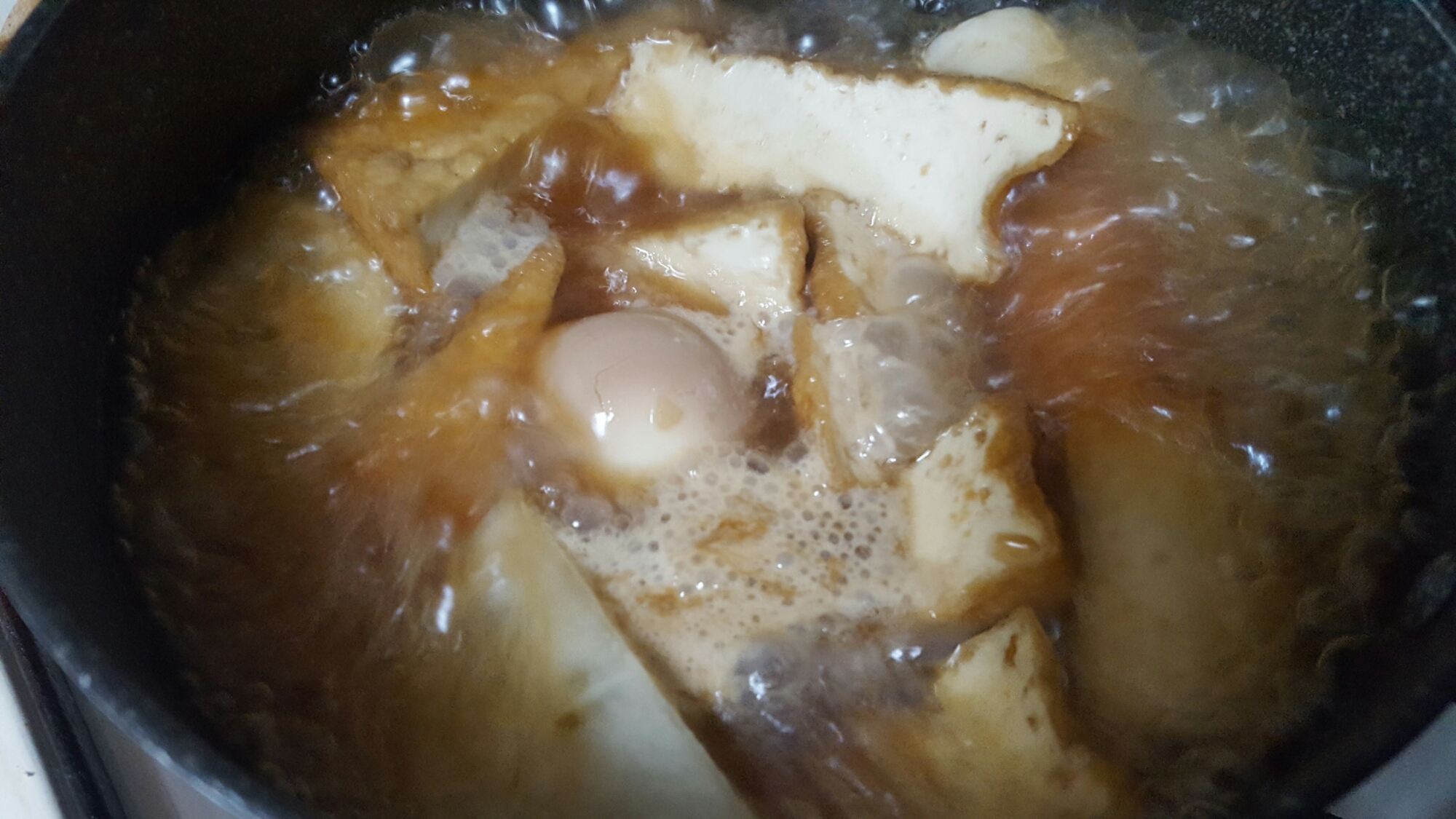 そのまま強火でグツグツ煮て、大根に色がついてきたら火を止めて冷まします。