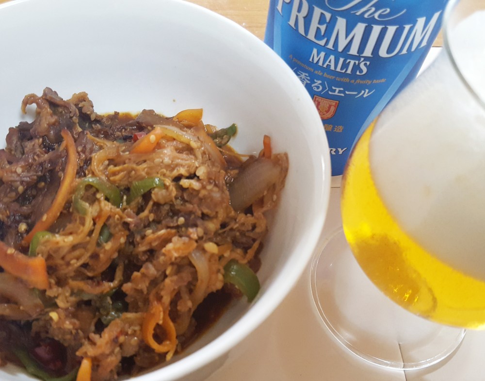 今回はビールに合わせて、しっかり味の牛肉のおかずです。