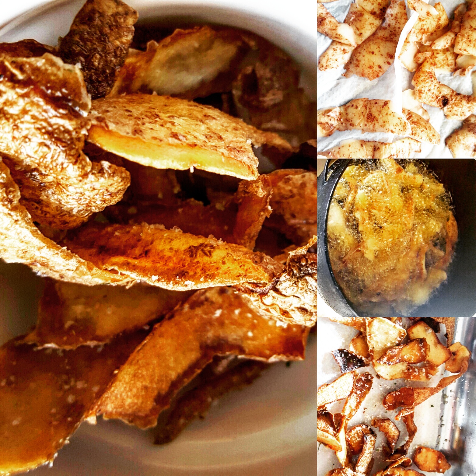 きれいに洗って、薄く剥いた皮を使ってポテトチップスを作ってみました。