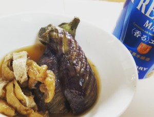 ◆材 料 (2人分) なす……2個 油揚げ……1枚 醤油★……大匙2 みりん★……大匙1 砂糖★……大匙1 水★…… 2カップ しょうが……1片
