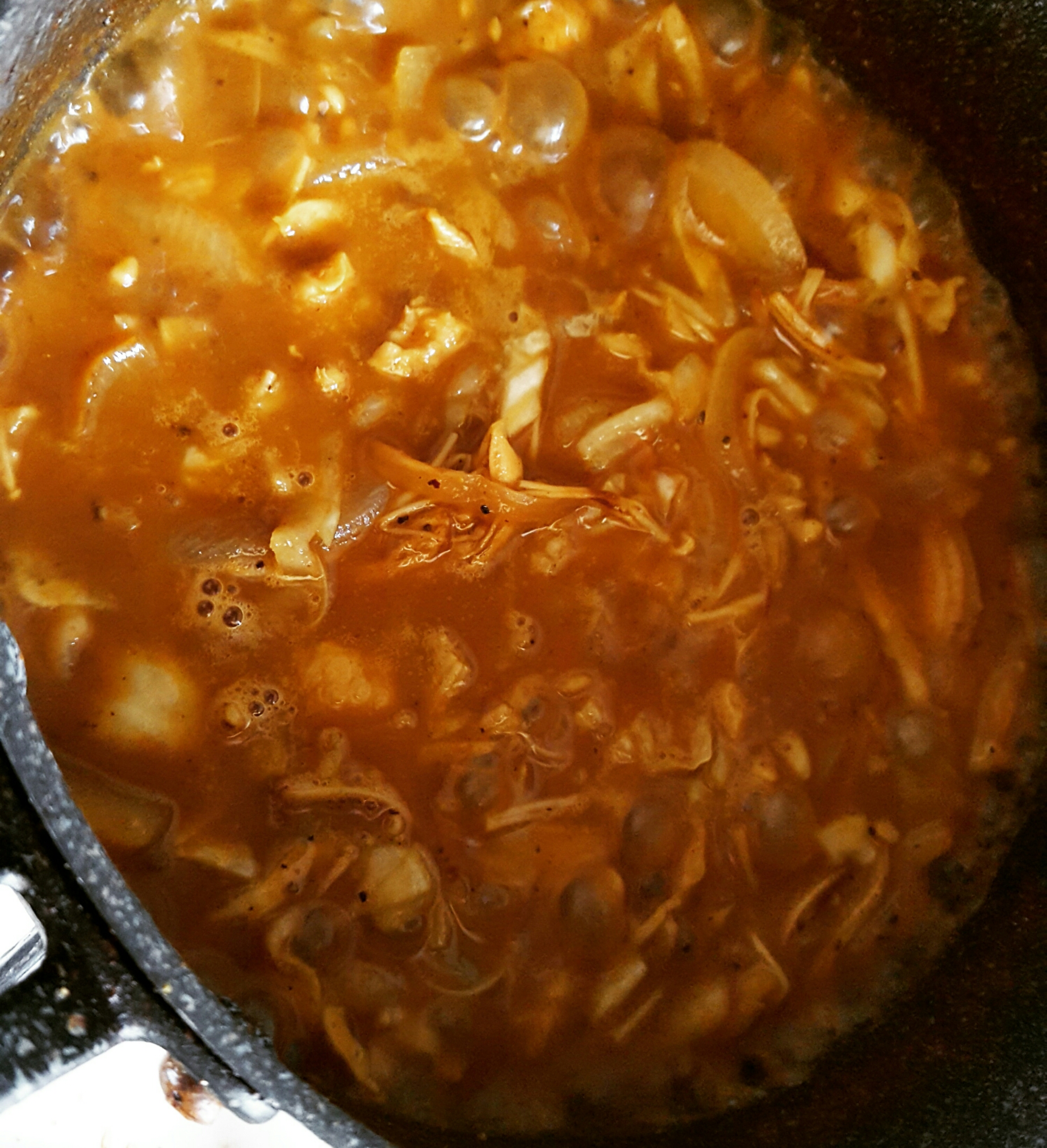 カレー粉をしっかり炒めて香りを出したら、コンソメスープと調味料で煮込むだけ。
