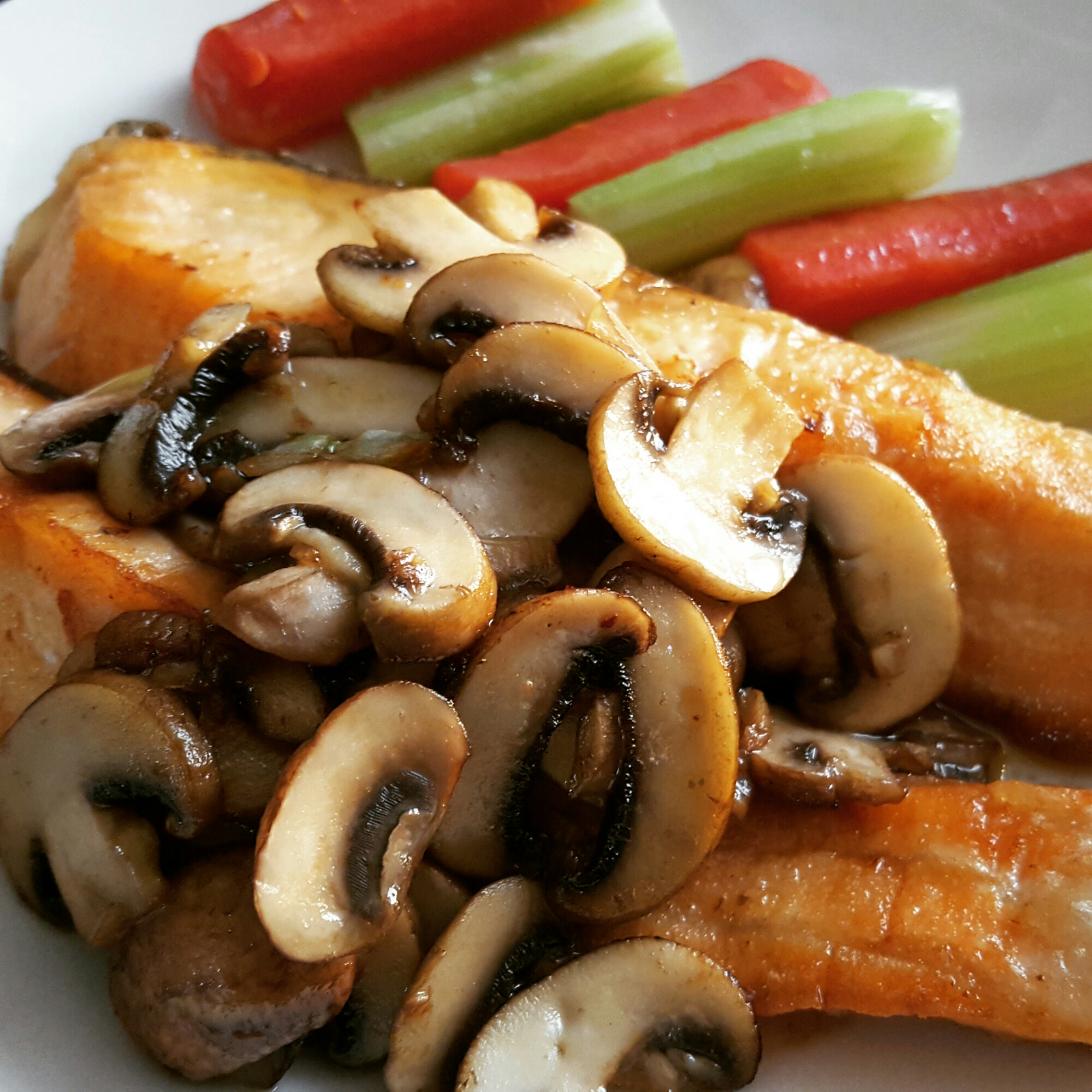 今回はそんな鮭をじっくり焼いたサーモンステーキに、マッシュルームたっぷりのソースを添えた一品です。