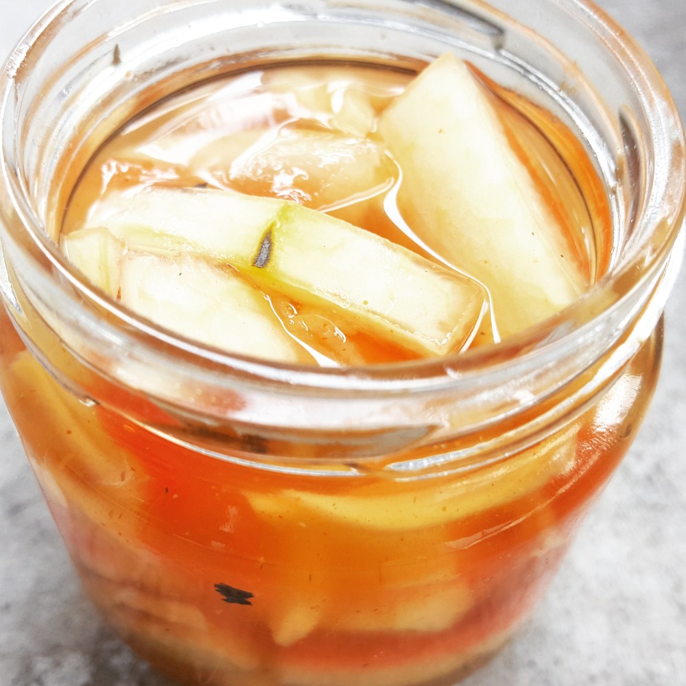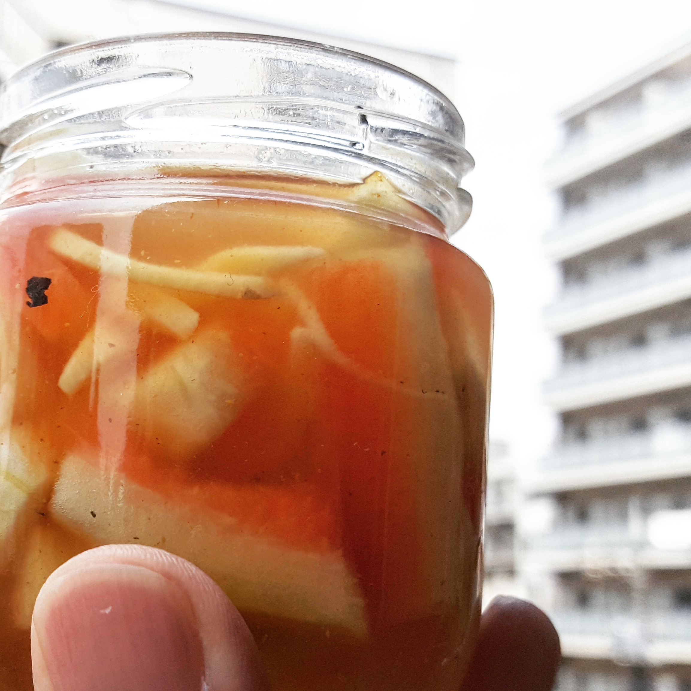 生姜の千切りと一緒に、酢、砂糖、塩をさっと煮立ててそのまま冷まします。