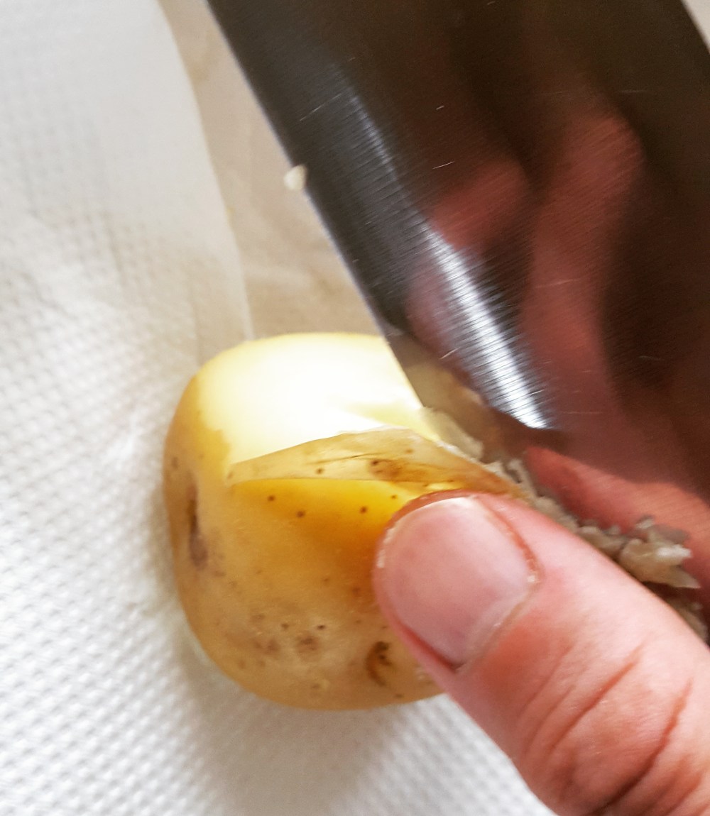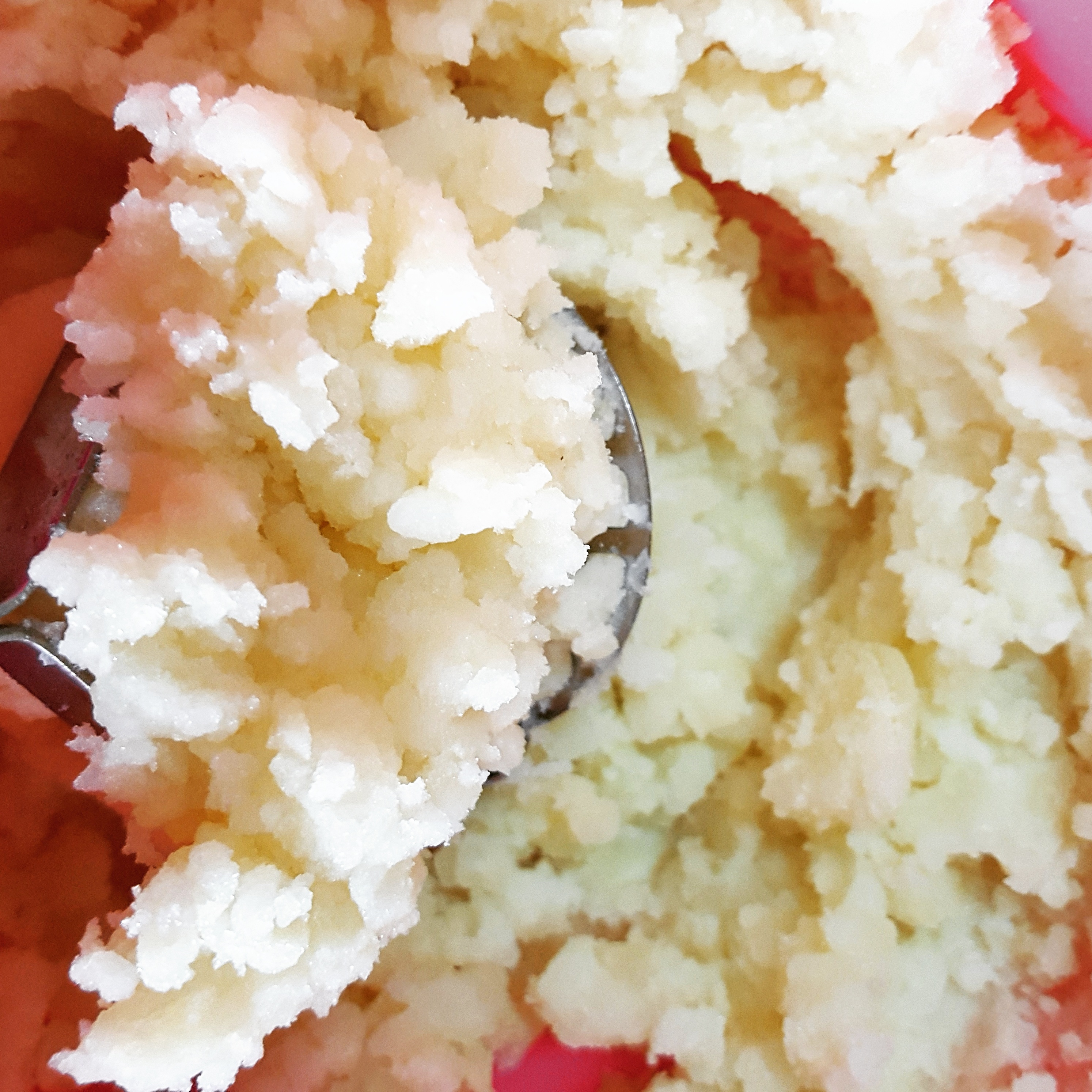 皮を剥いたらボウルに入れ、酢を振りかけてなめらかになるまでマッシャーやフォークの背でつぶします。