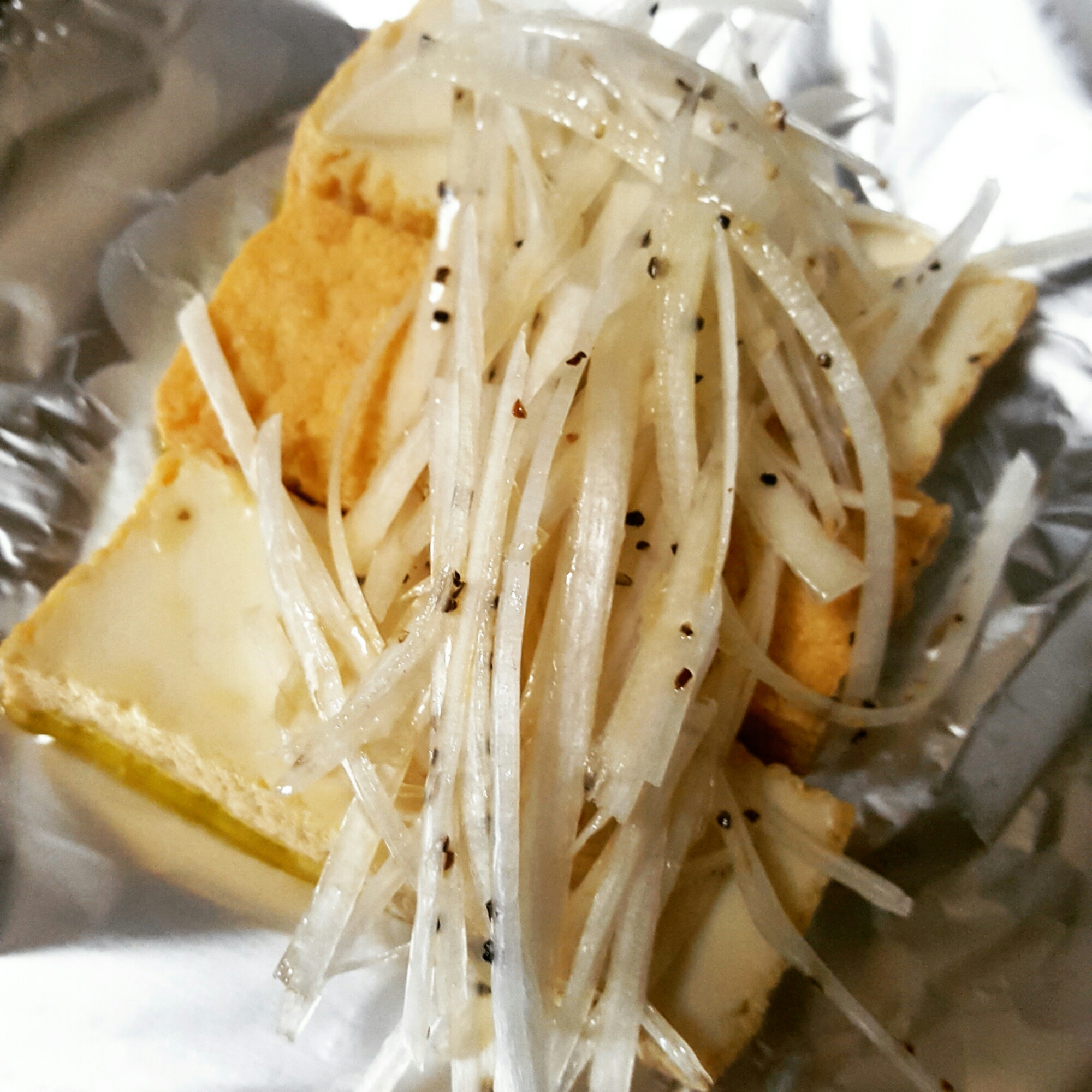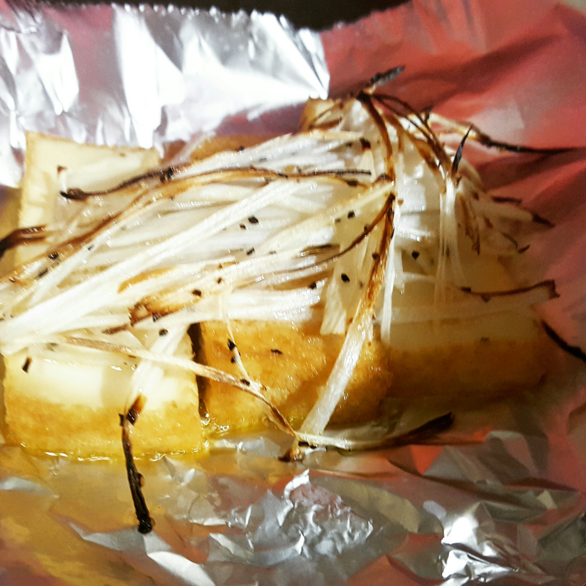 食べやすい厚みにスライスして、アルミホイルに。