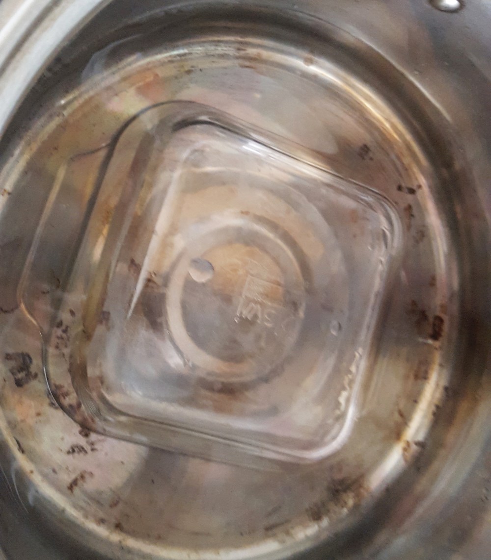 蓋付の底の深い鍋に水を張り、耐熱のお皿を伏せて置きます。