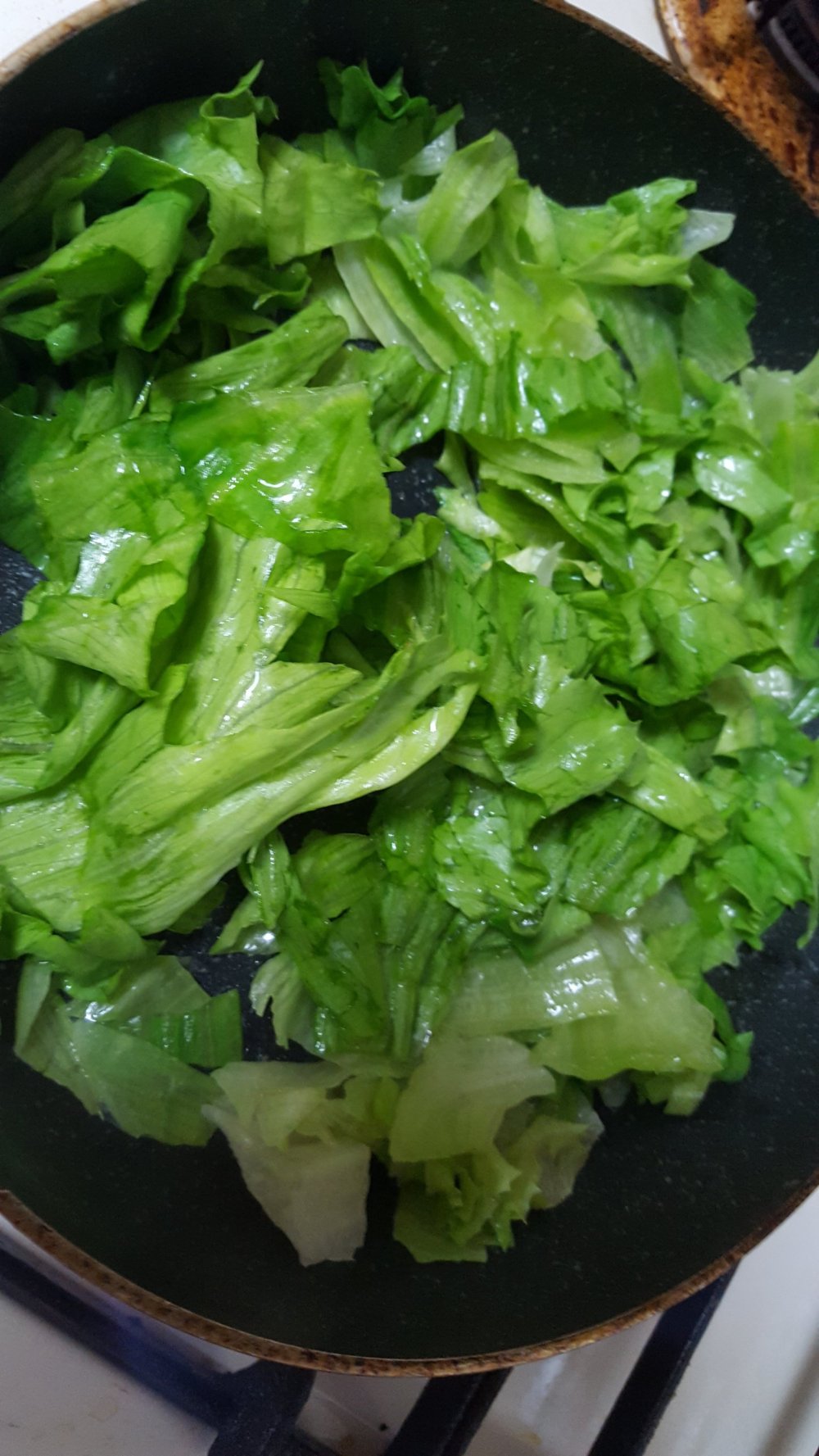 2. ごま油を熱してレタスを炒めます。
