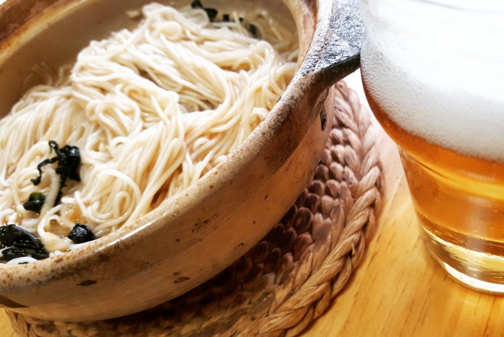 鍋のシメは「鍋焼きそうめん」です。