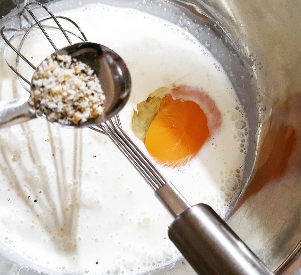 ボウルに材料を入れて泡立てます。