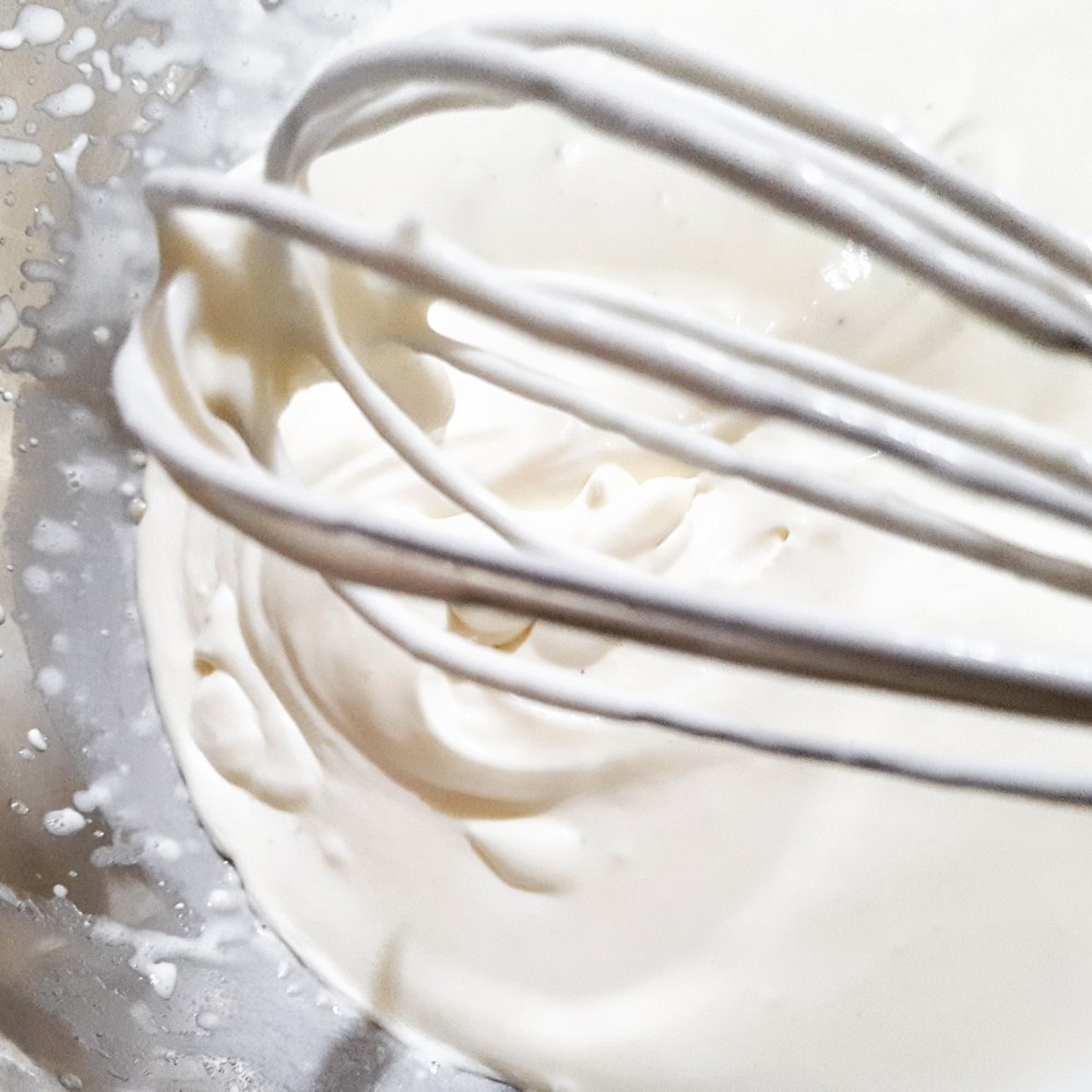 空気をしっかりと入れるように、生クリームを持ち上げては落とすという感じで混ぜていきます。