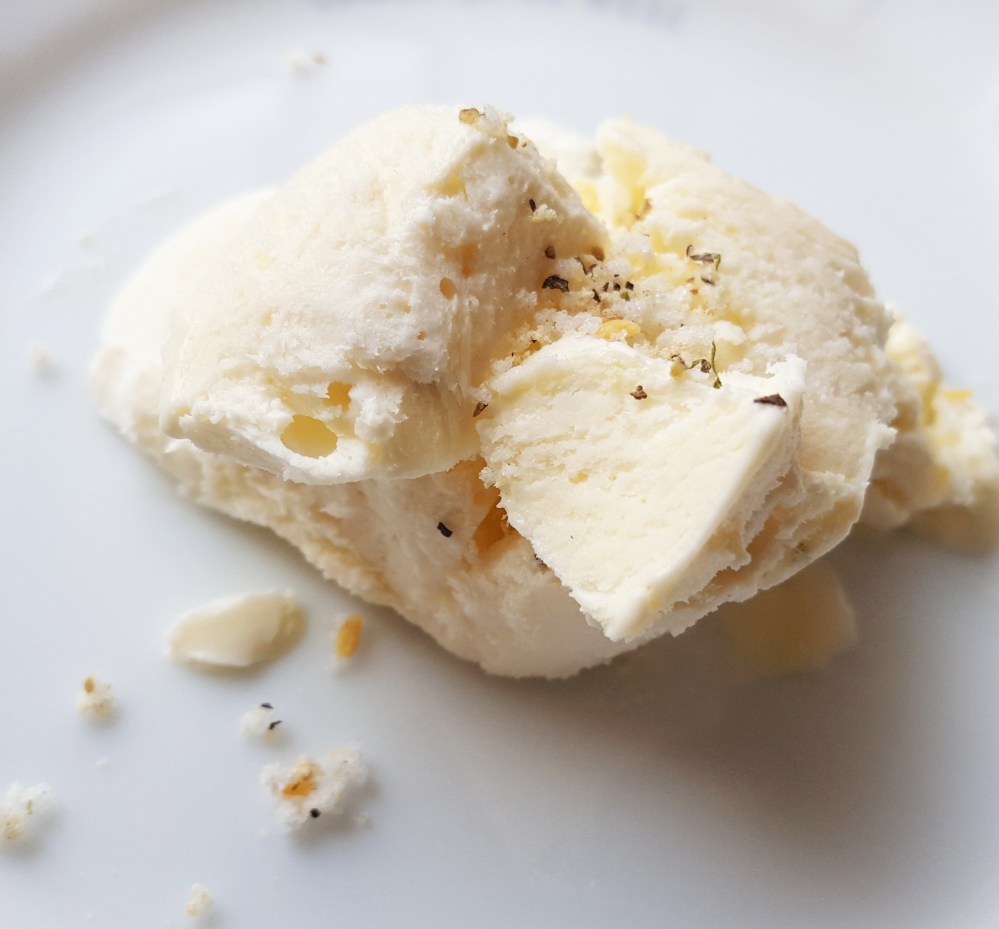 材料(2人分) 生クリーム……1パック 砂糖……大匙3 卵黄……1個分 バニラエッセンス……3滴 香りソルト レモンペパーミックス……小匙1
