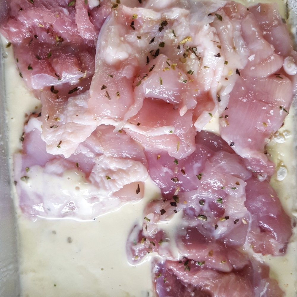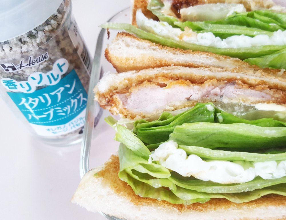 ■材料(1人分) 鶏モモ肉……1/2枚 香りソルト イタリアンハーブミックス……小匙1 天ぷら粉(水に溶いておく)……大匙1.5程度 パン粉……1カップ弱 レタス……2枚 食パン……2枚 バター……1片 マヨネーズ……大匙2 からし……小匙1