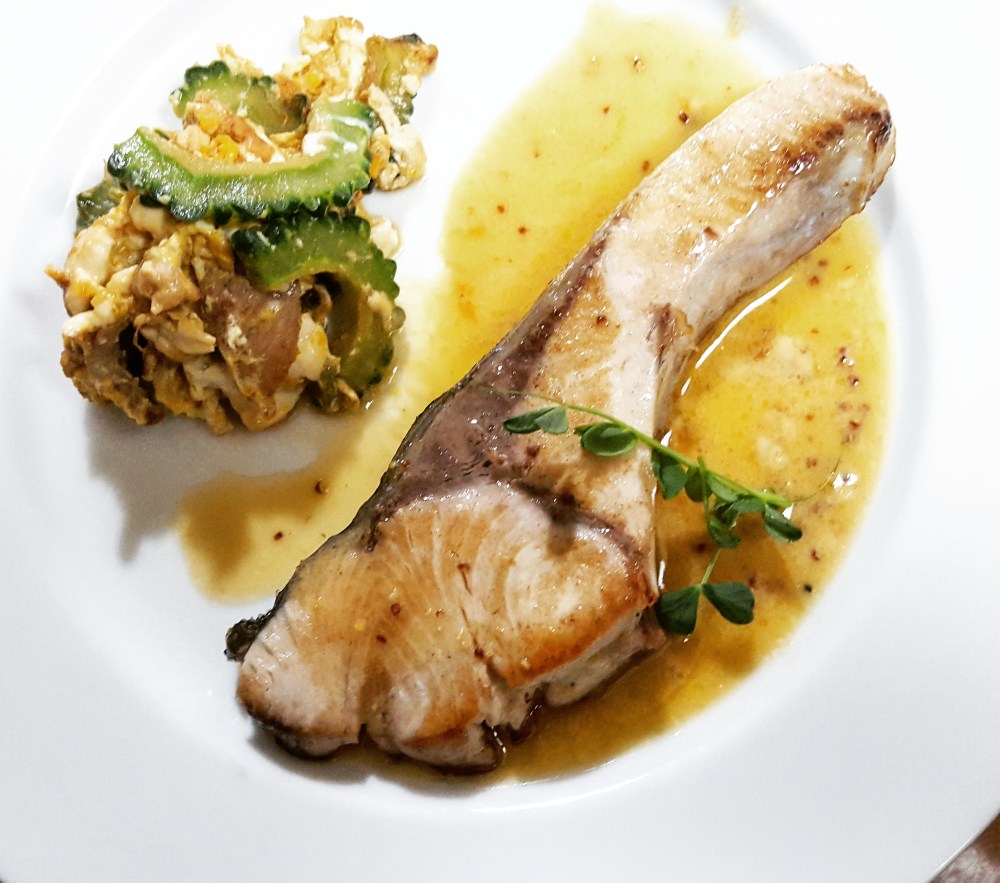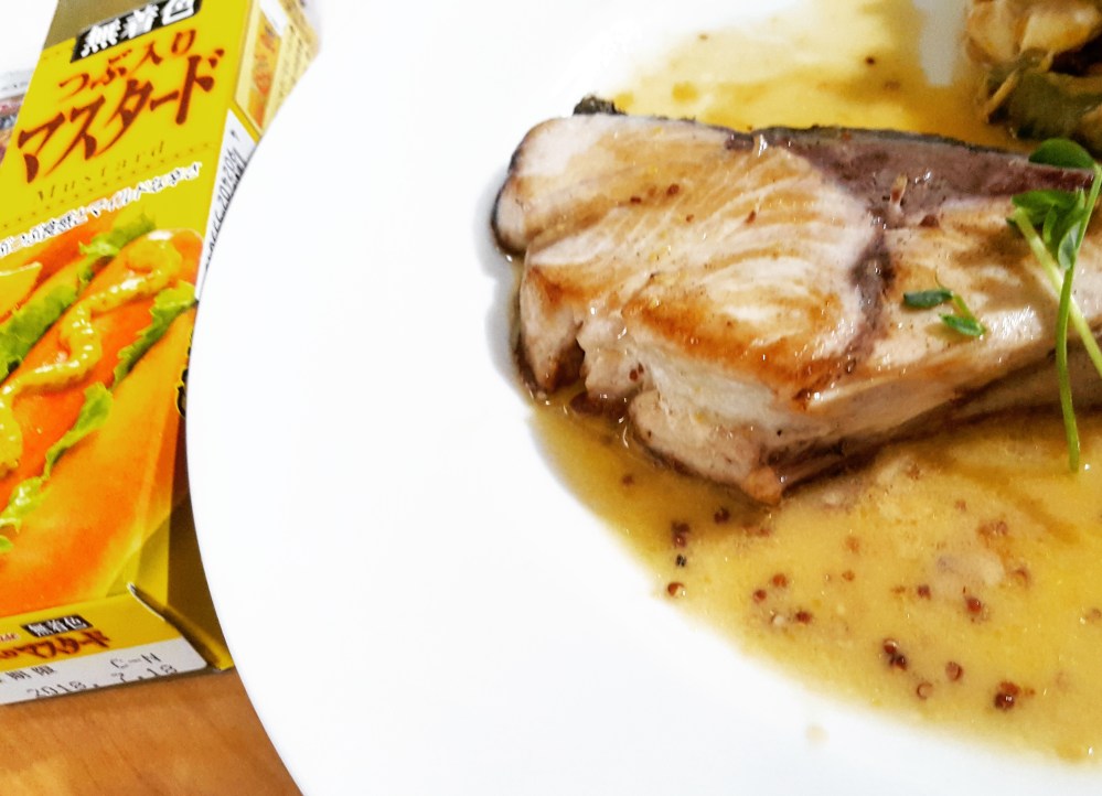 材料(1人分) ぶりの切り身……1切れ 塩コショウ……1つまみ オリーブオイル……大匙1 【ソースの材料】 玉ねぎ……1/4個 にんにく……1片 白ワイン……1カップ コンソメスープ……1カップ 生クリーム……1/2カップ ハウスつぶ入りマスタード……小匙1 バター……10グラム程度 塩コショウ……1つまみ