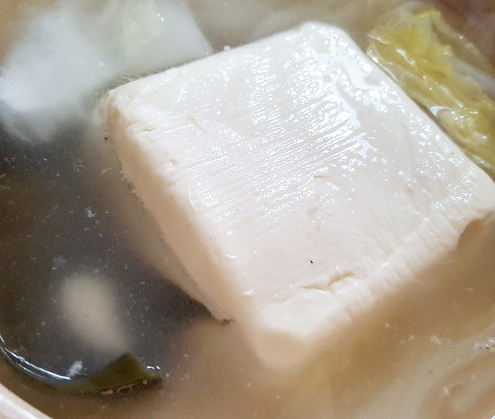 材料(1人分) 豆腐(水切りしておいたもの)……1丁 昆布……1枚 水……300㏄ 創味シャンタンやわらかタイプ……7cm 白菜……1枚 【〆の材料】 乾燥ラーメン……1束 卵……1個 ネギの青い部分……1本分 醤油……小匙1 ごま油……小匙1
