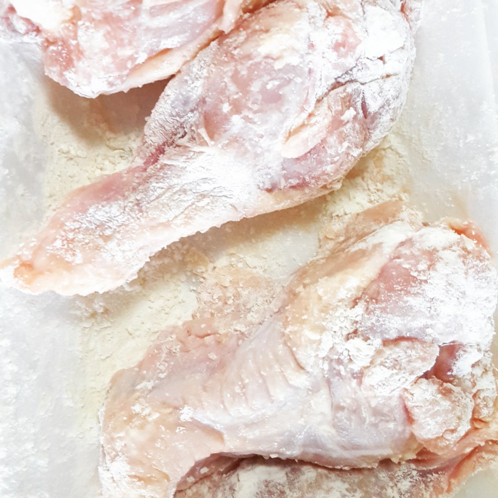 手羽元に小麦粉をつけます。