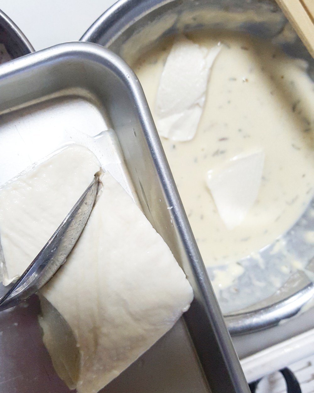 意外かもしれませんが、水切りした豆腐はまるでモツァレラチーズのような食感。