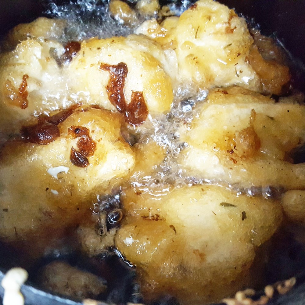 4. 熱した油で3.を揚げていきます。色づいたら返して両面しっかりと。