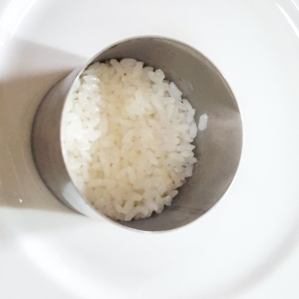 セルクル型をお皿に乗せ、ごはんを詰めます。