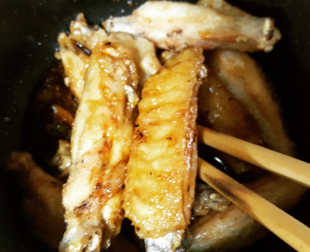 甘辛いたれを絡めて、
