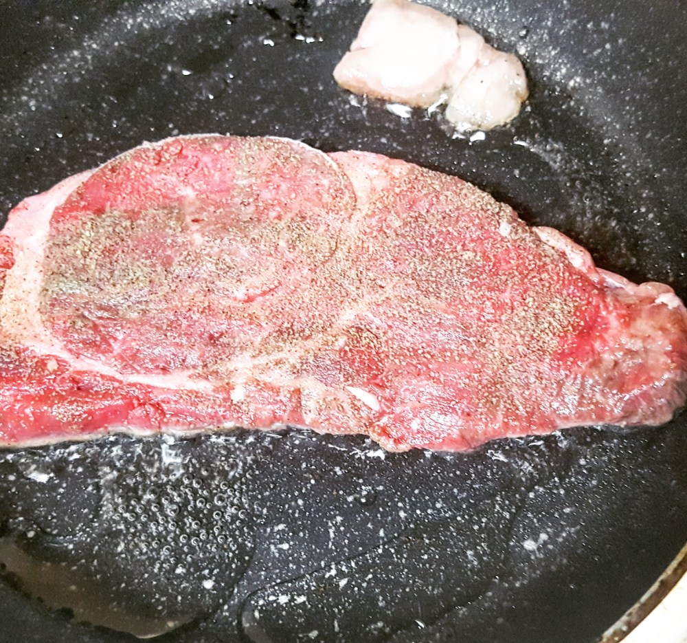 塩コショウして、あればステーキ用のスパイスを。