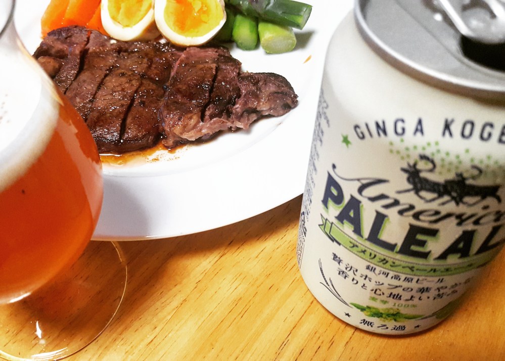 ステーキには赤ワインもいいですが、薫りよくてコクのあるビールもおいしいですね。