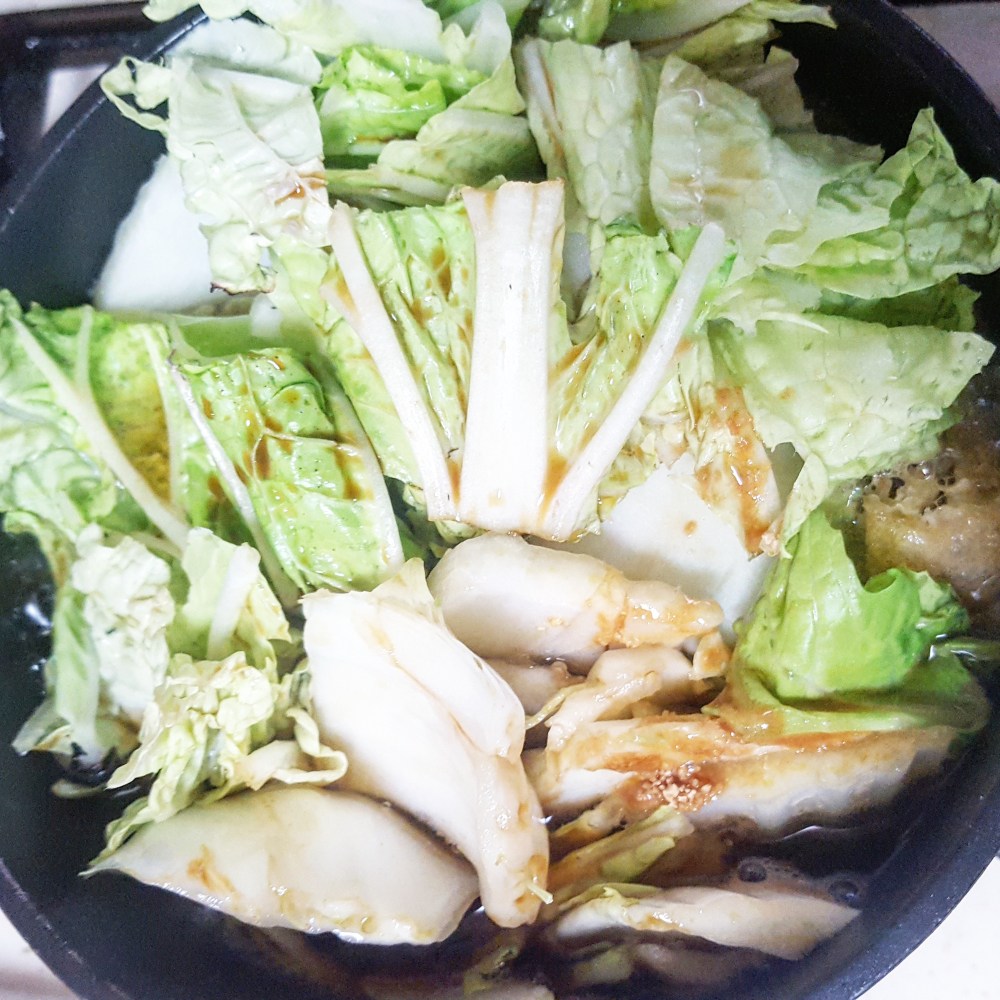 白菜がくたっとしてきたら煮あがりです。