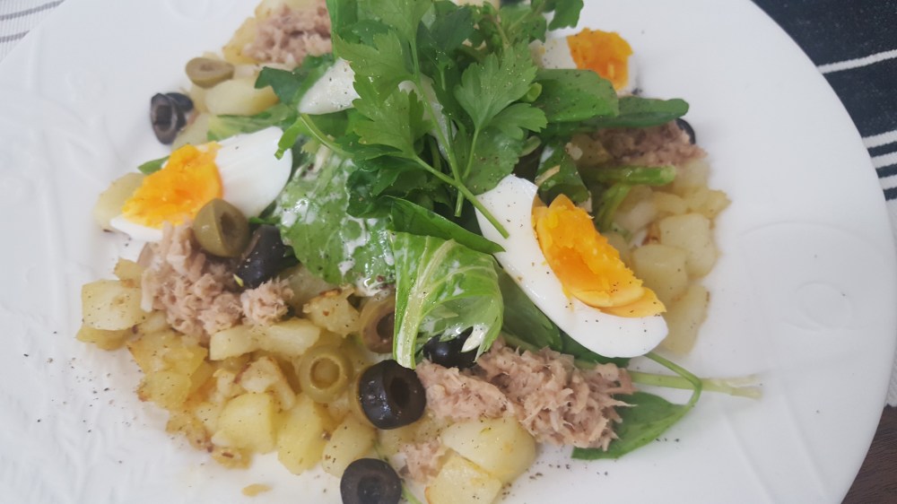 ニース風サラダのポイントはオリーブ、じゃがいも、アンチョビかなと思います。