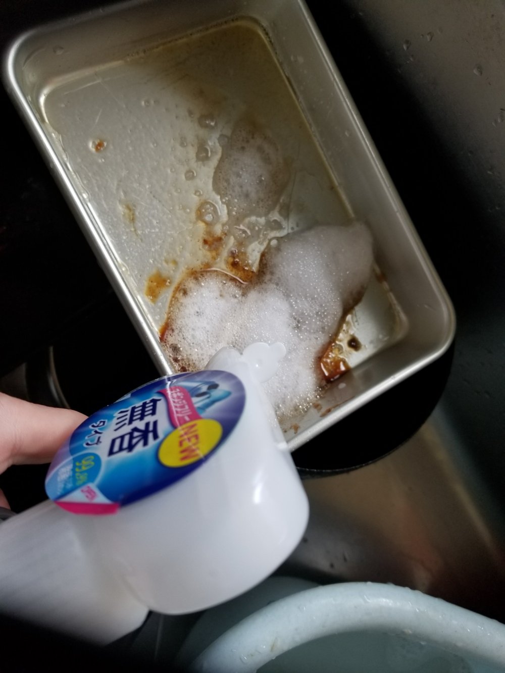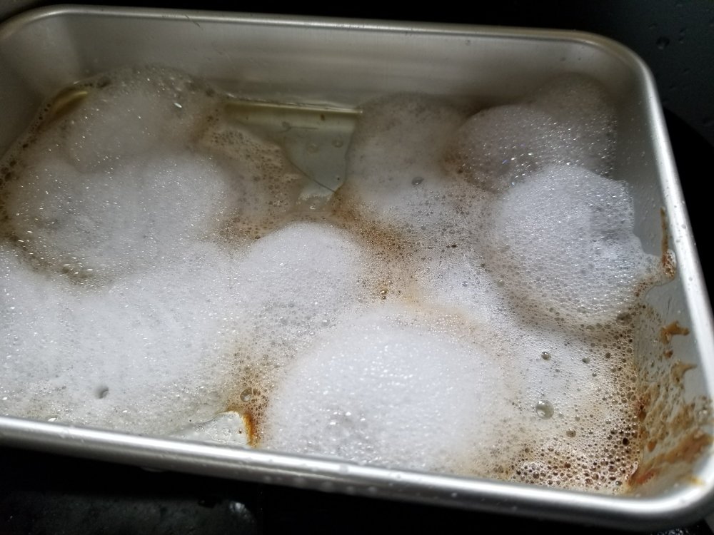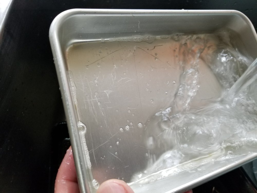 さっと水で流すと、たしかにこすらなくても汚れが流れていきます。