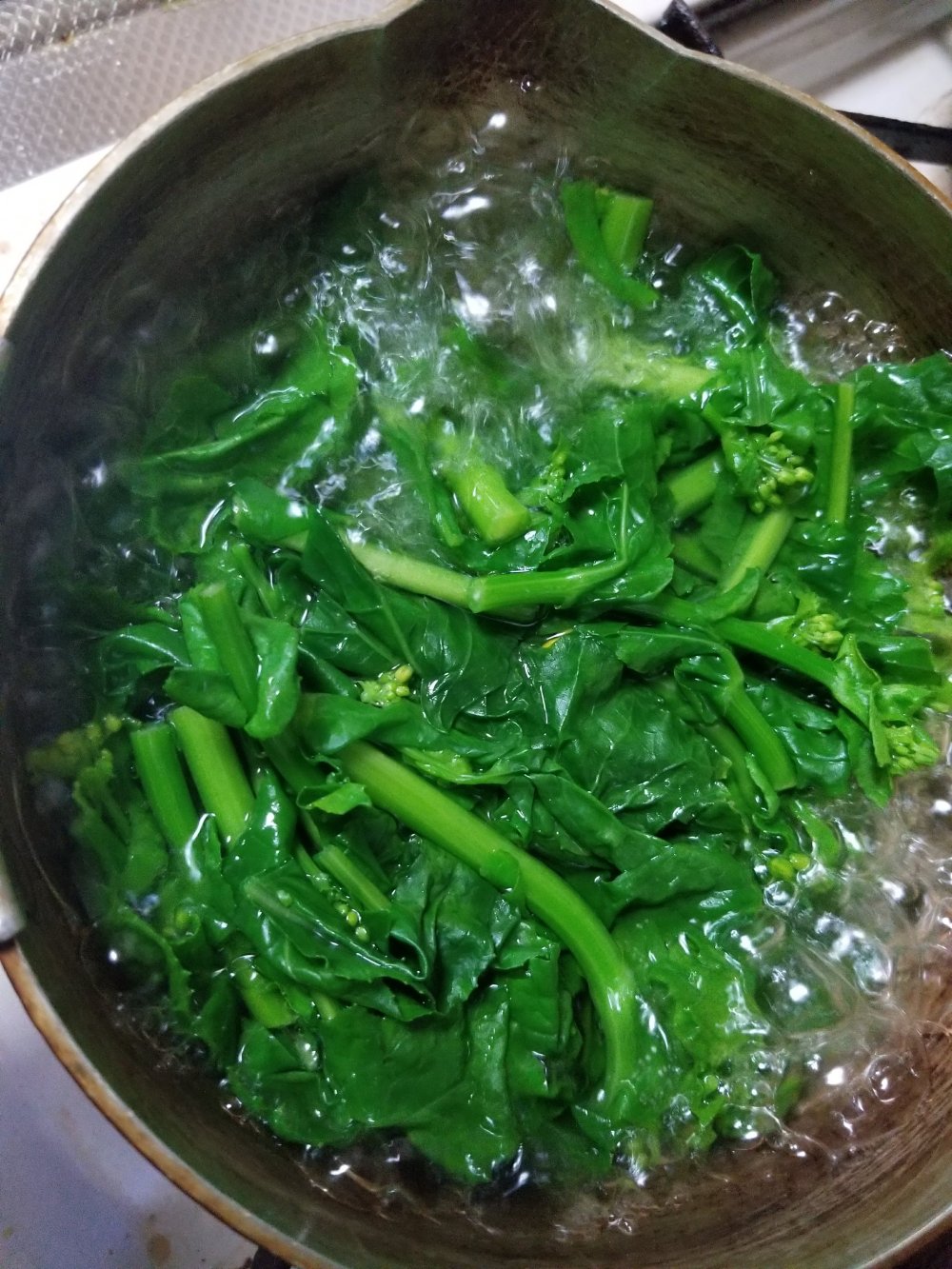 茎を先に茹でて、あとから葉の部分を入れると、ゆで加減がそろいます。