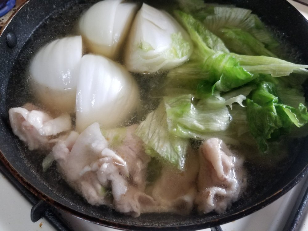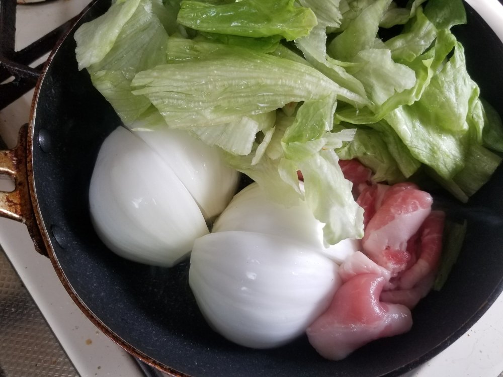 豚バラの色が変わり、レタスがしんなりとしてきたら、