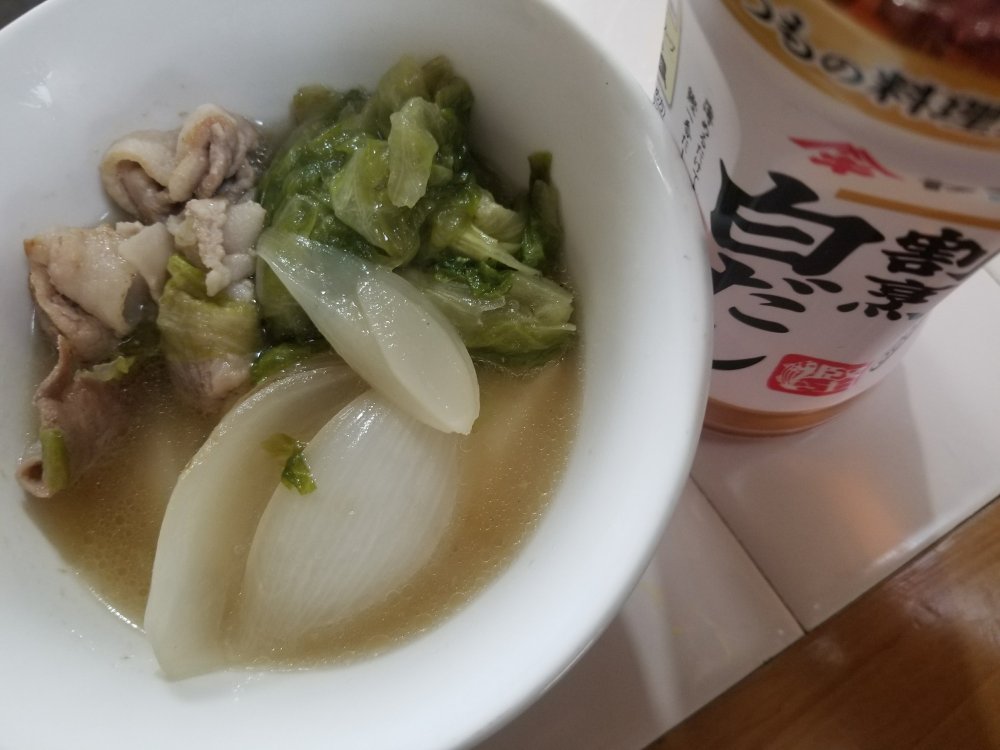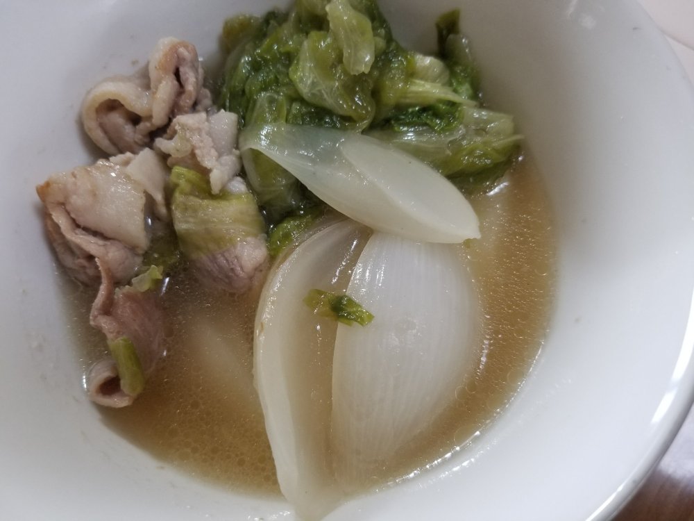 とろりとした玉ねぎが甘くて、レタスの食感がアクセントの白だしさっと煮です。