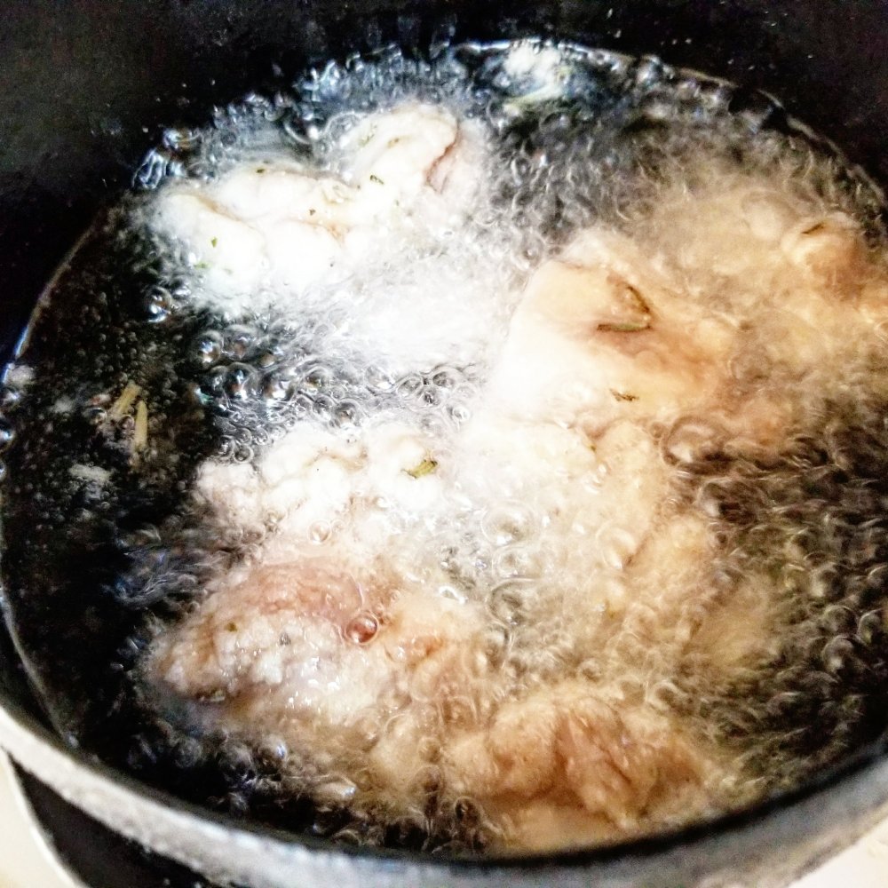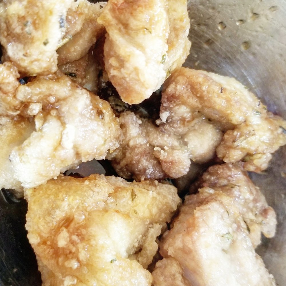 なんとなく揚げ物というと、素材を小麦粉や片栗粉、パン粉で覆って表面が乾いた状態で揚げるイメージがあるのでちょっと不思議な感じです。