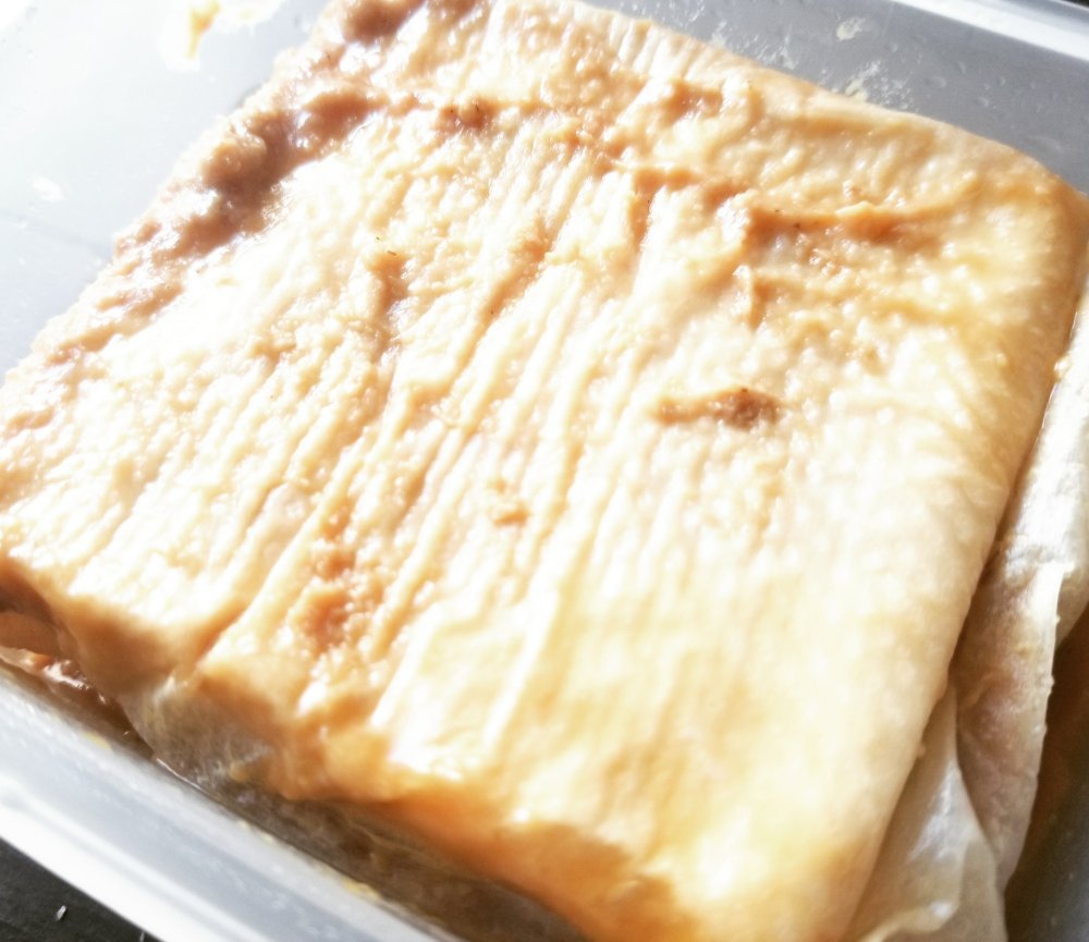 二時間経ったら豆腐をひっくり返して、また蓋をして冷蔵庫に。