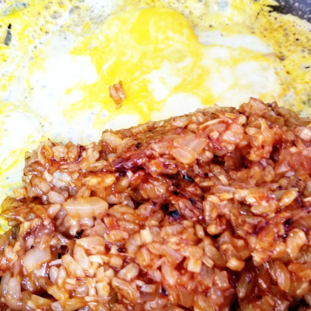 玉ねぎとえのきをたっぷりとケチャップライスに混ぜ込んで、お米の量を減らすのがmyレシピ。