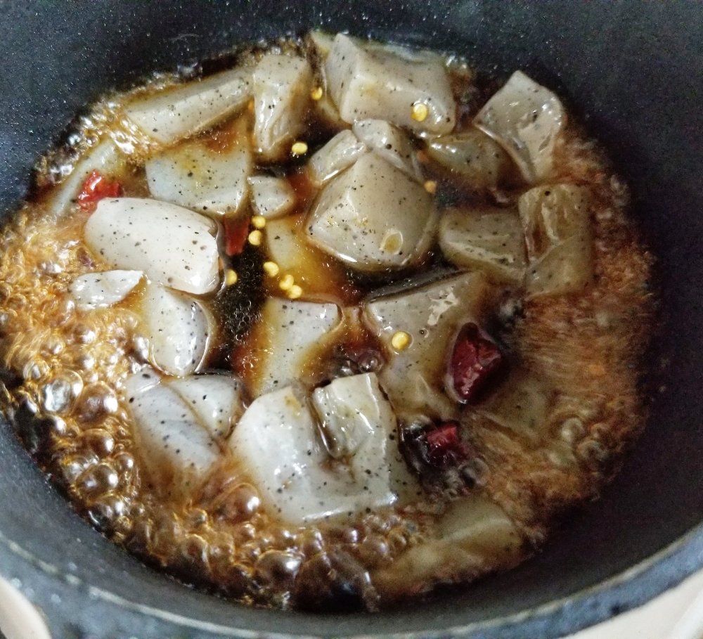 こんにゃくは手でちぎり、さっと下茹でしてあくをぬきます。