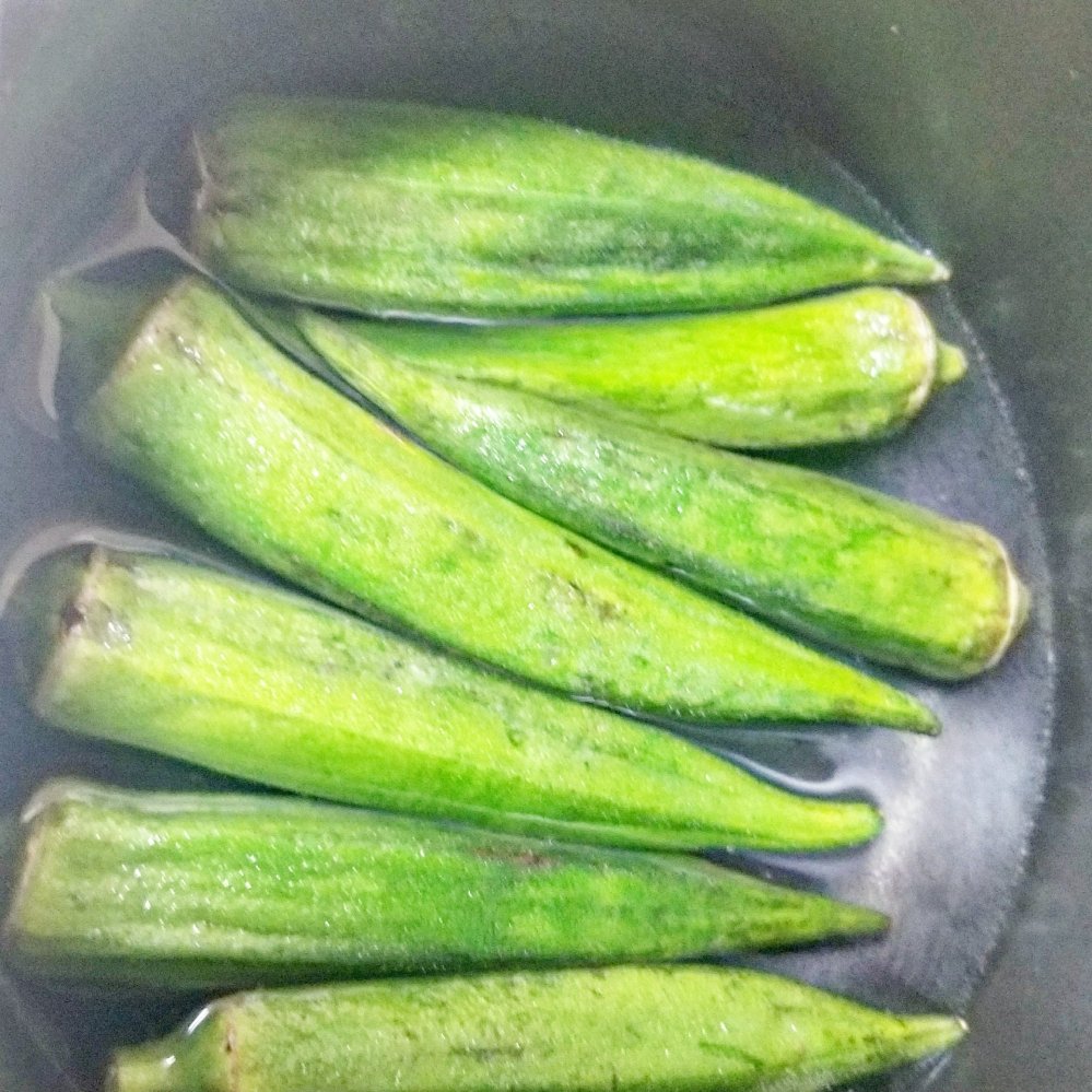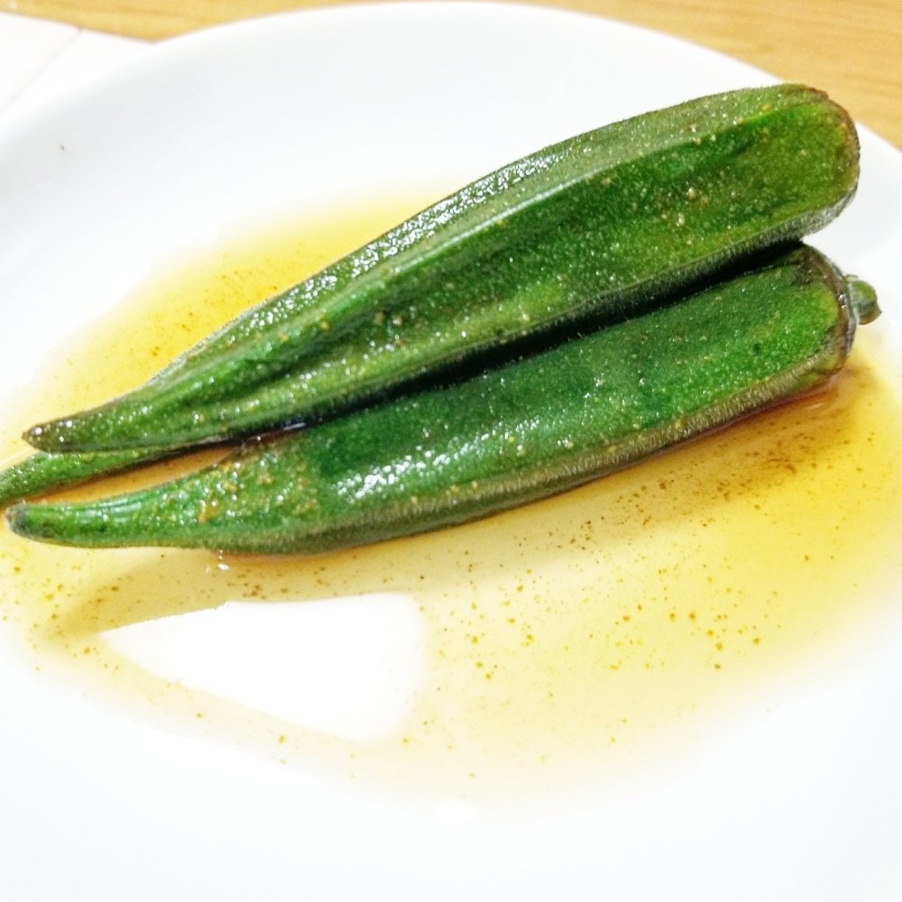夏に美味しいおくらをいつもの味付けにカレー粉を足してスパイシーに味変していただきます。