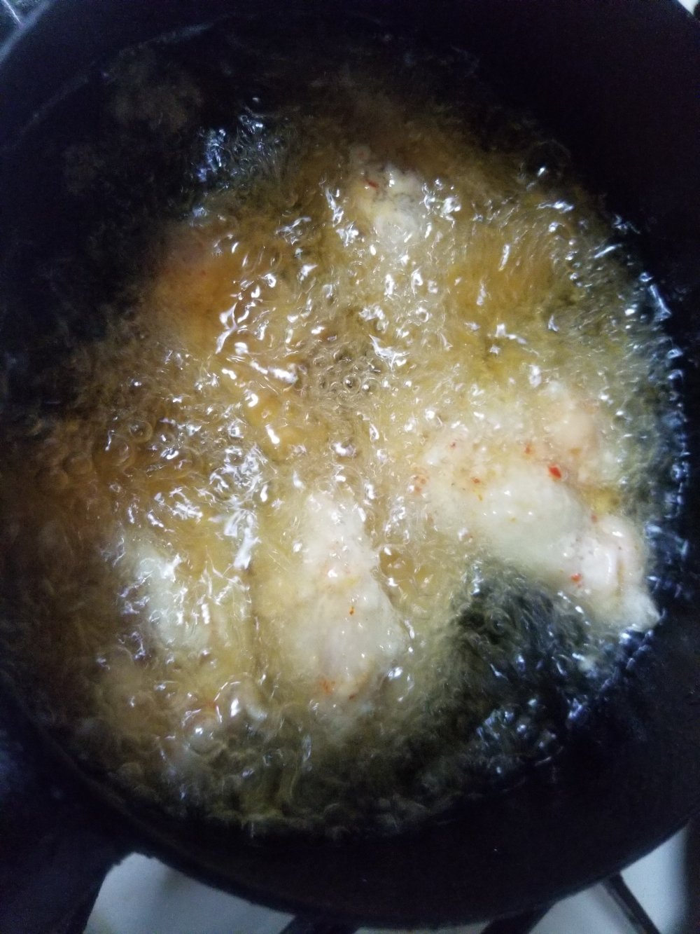 衣が色づいたら火から揚げてよく油を切ります。