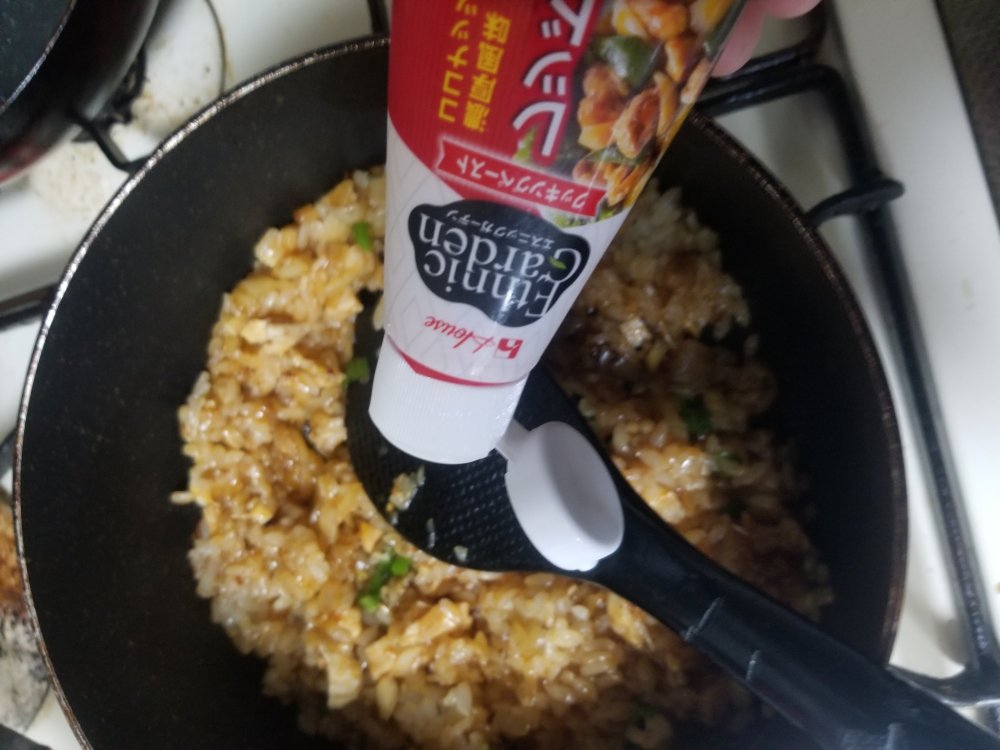 ハウス エスニックガーデン クッキングペースト を使って作るエスニック風味のチャーハンです。