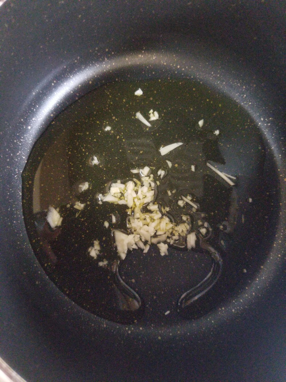 オリーヴオイルでにんにくを炒めて香りがたってきたら、