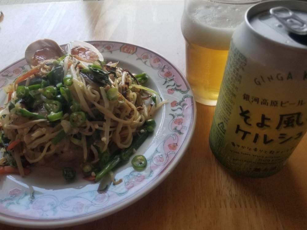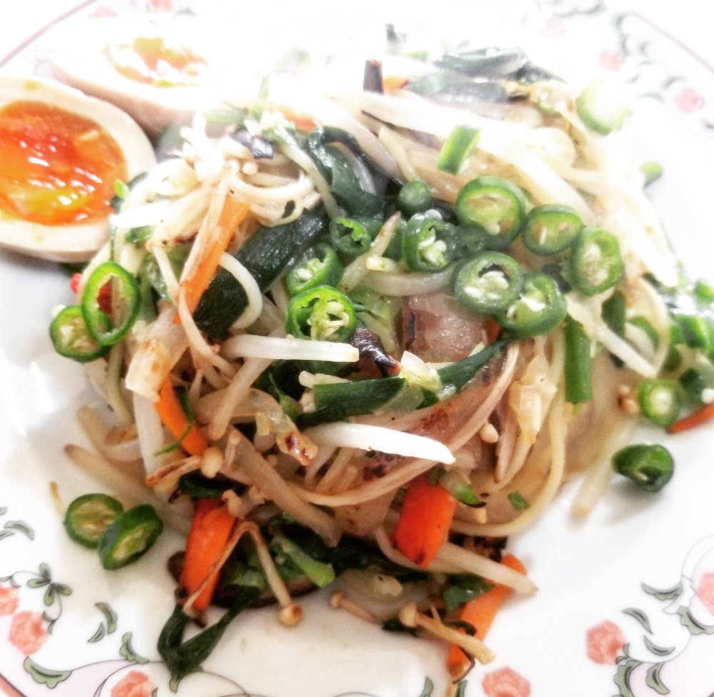 夏に美味しいさっぱり味で野菜たっぷり塩焼きそば。