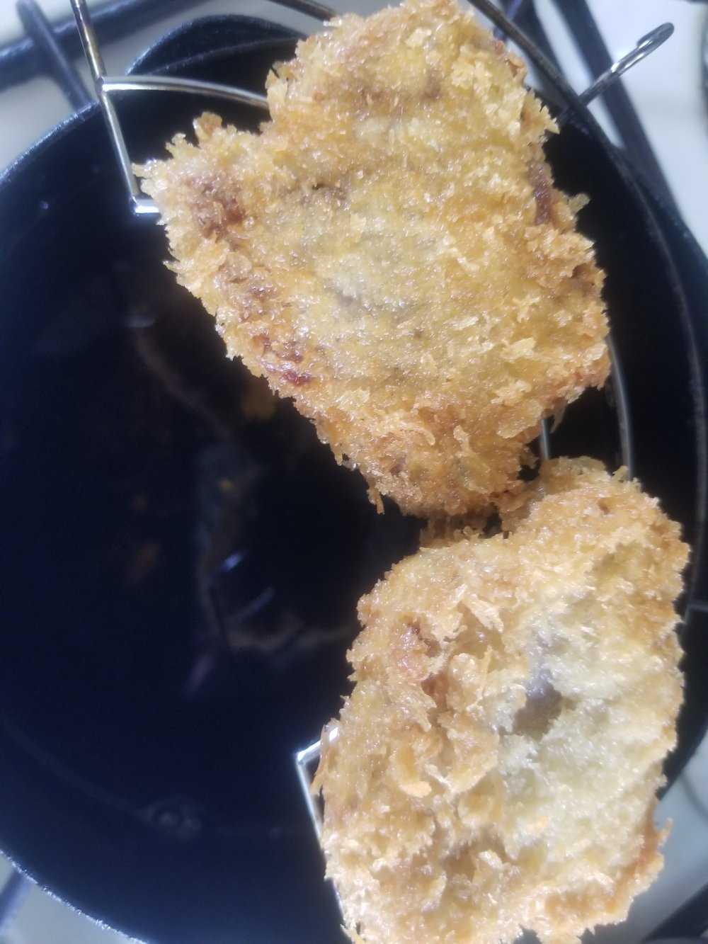 しっかりと色づくまで揚げて、