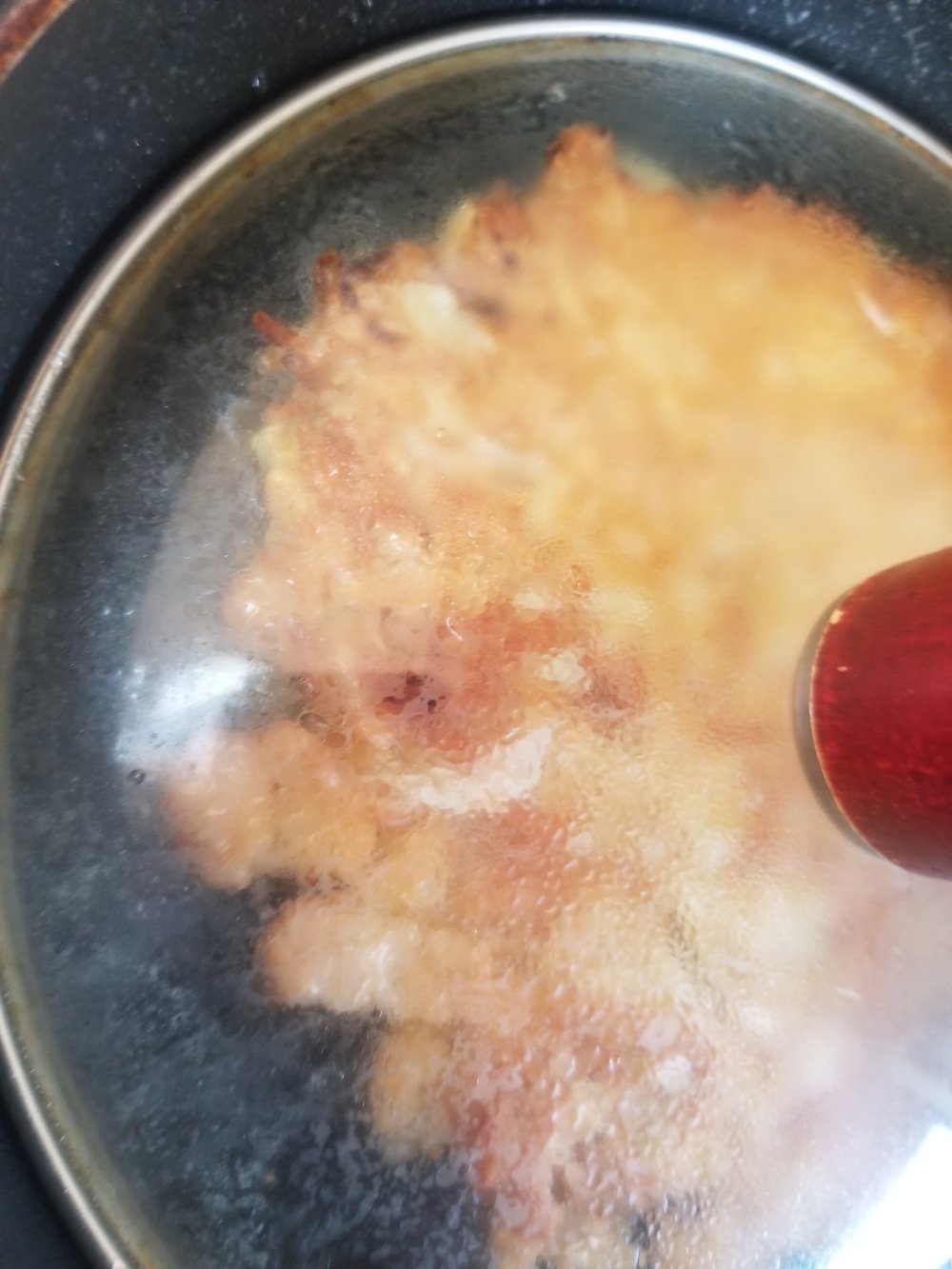 ひっくり返して弱火にして、蓋をします。