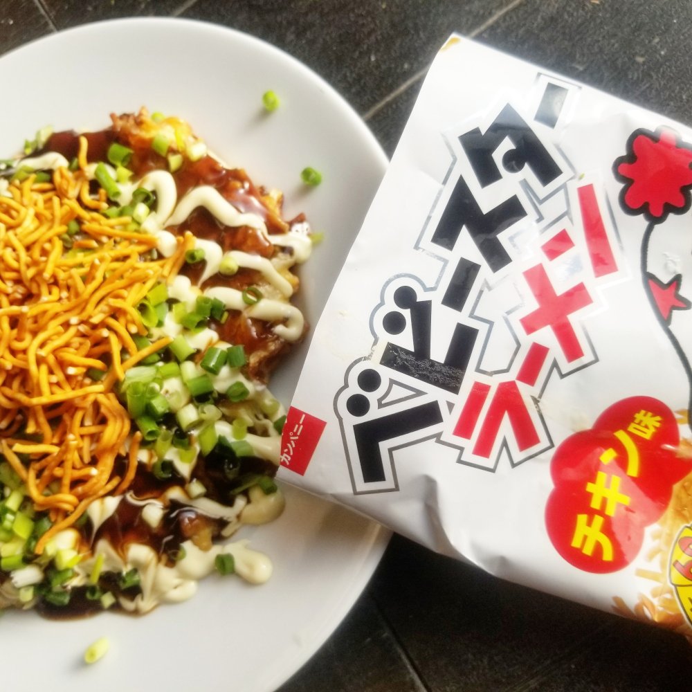 ベビースターラーメンのかりかりした食感と、ふわっと焼き上がった生地の相性でビールの進む一皿です。