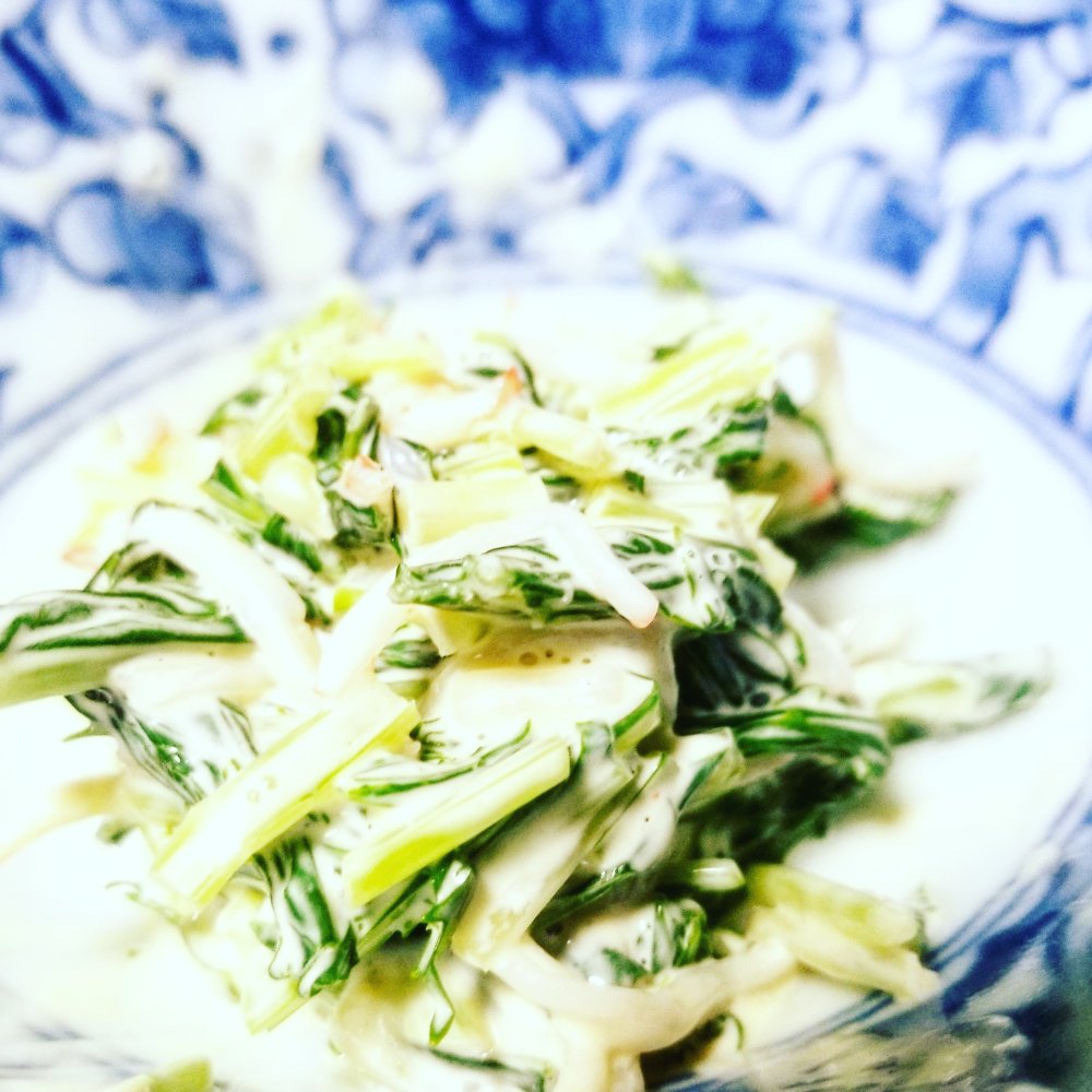 あとはほぐしたカニカマとともに、わさびマヨネーズで和えるだけ。