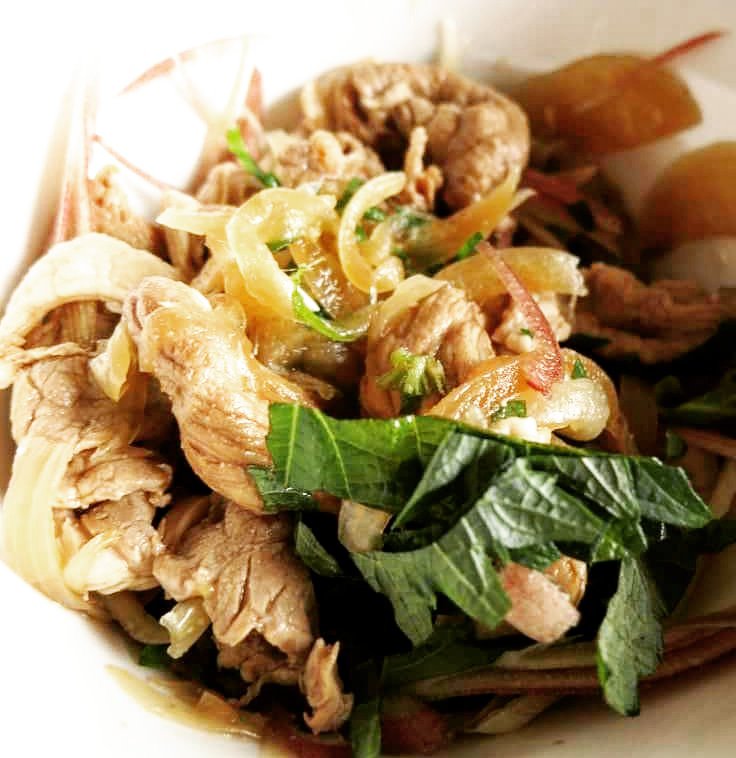 冷蔵庫に常備しておくと、いろいろと便利なのですが、そのたれに酢と砂糖を足して、さっとゆでた豚肉と玉ねぎを漬け込みます。