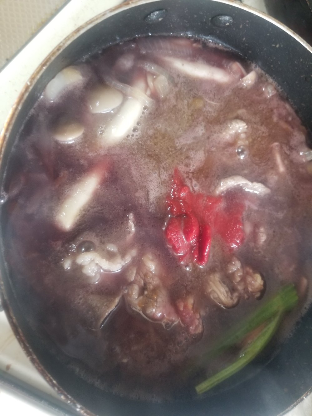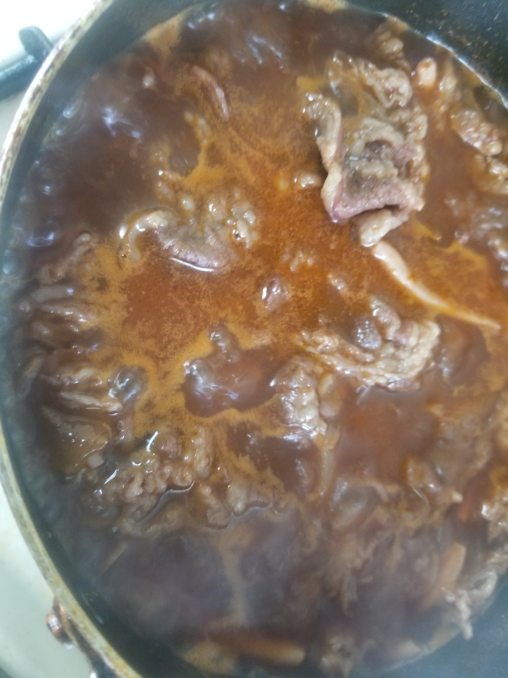 赤ワインにコンソメ、トマトペーストかホールトトマを入れてあとは煮込むだけ。