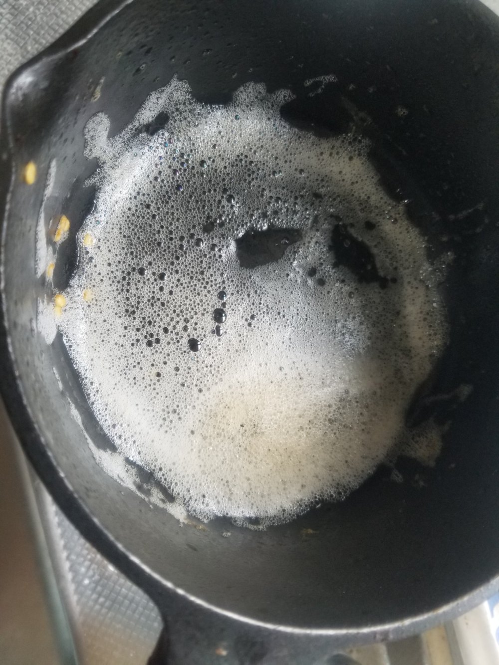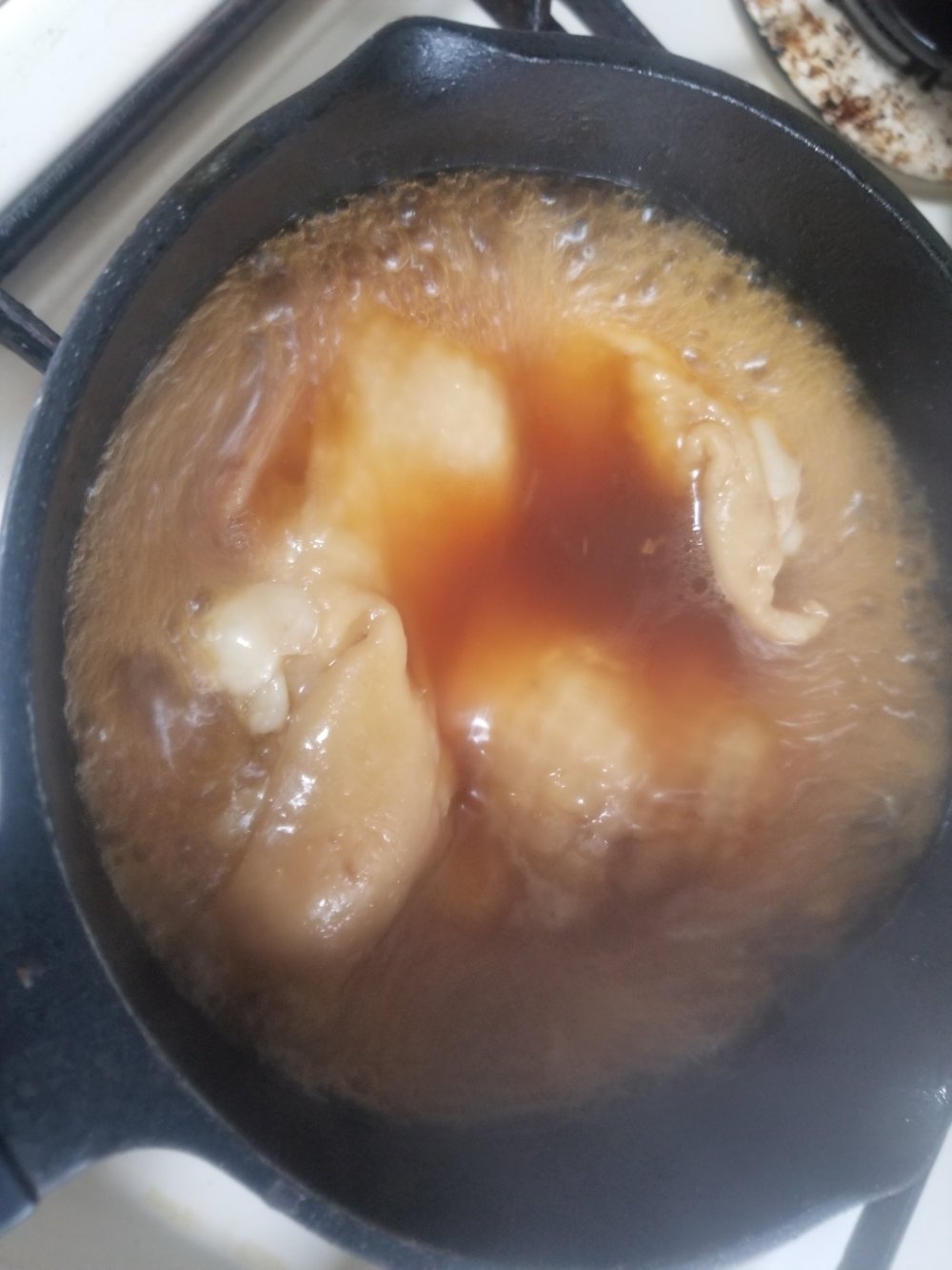 鶏肉の油脂と糖分がお鍋に残ってますね。